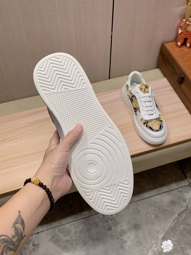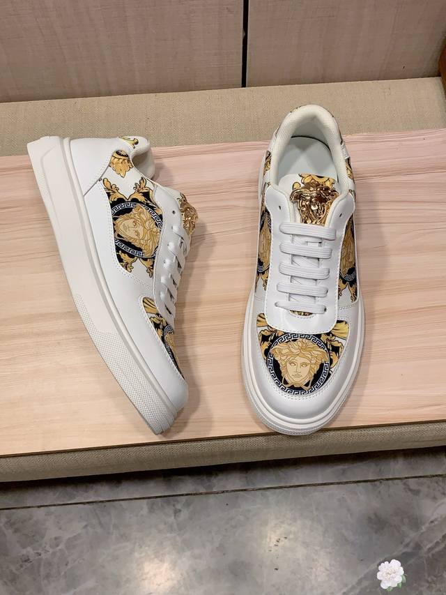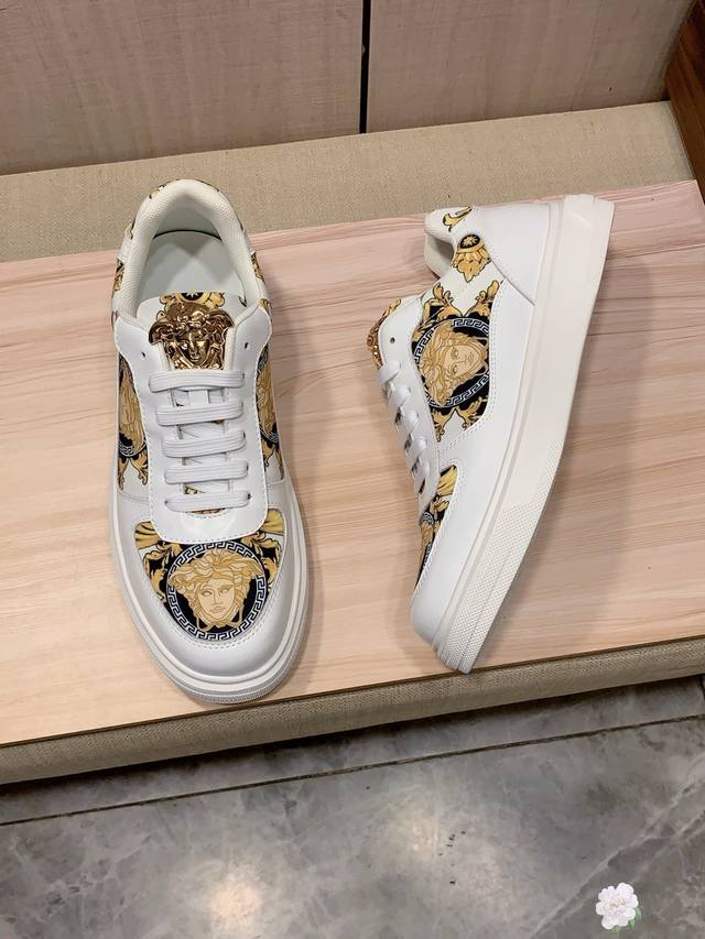 New Arrival: Factory direct Versace* latest hot-selling casual shoes, top-tier luxury brand~ top-quality through personal shopper. The upper is made of imported breathable cowhide combined with breathable sheepskin insole and exquisite workmanship. Original design, stylish and soft rubber outsole, wear-resistant and non-slip, lightweight and comfortable on the foot. Actual product photos show even better! Sizes: 38-44, 2 colors available.