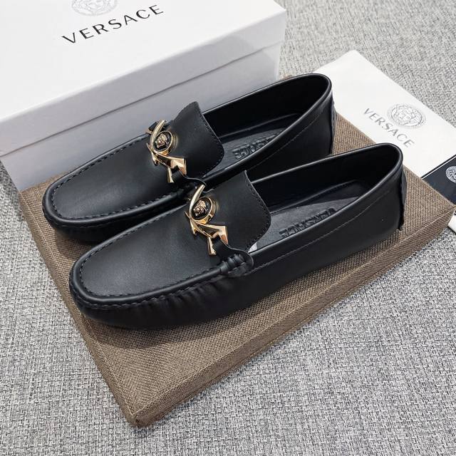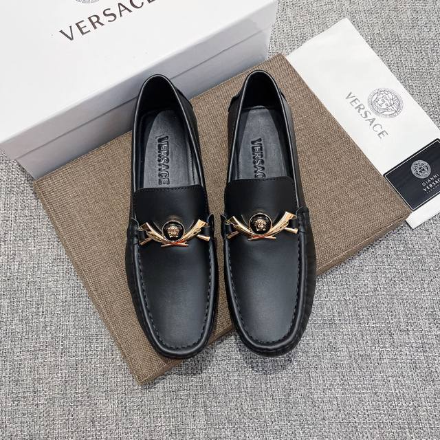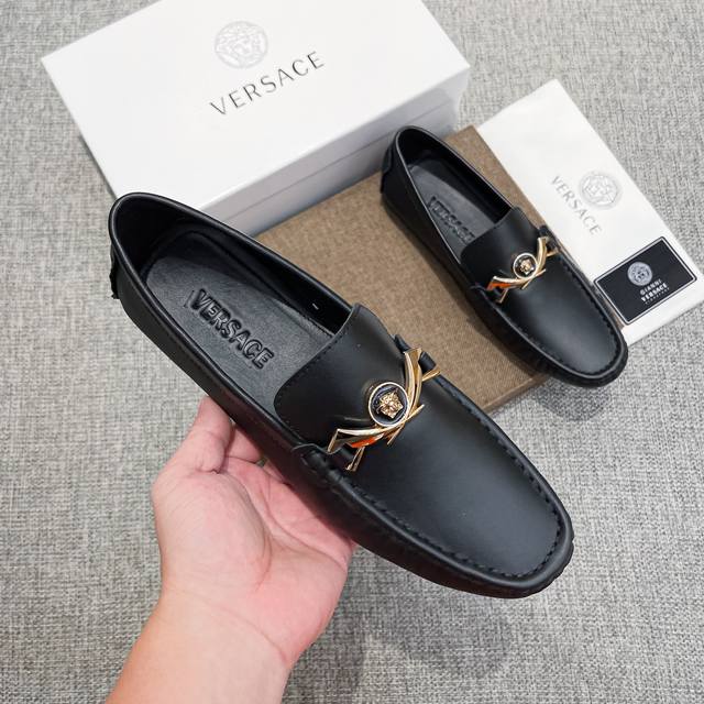 Official price, Versace brand, high-end, new style, a hot item among Italian supermodels and aristocrats. Versace is a leader in the fashion world, unparalleled. High-quality premium driving shoes from the official website. Suitable for driving, casual wear, office work, business, and as the first choice for lazy men. Celebrity style, original authentic product, made with imported original top-grain cowhide, original comfortable and breathable lining, genuine materials. A prestigious French style, priced at 25,880 Swiss Francs. A runway piece from Paris Fashion Week. A brand can deeply resonate with you, and a pair of shoes can make you linger. Wearing them is not just about prestige, but also about aura. Standard size 37-46