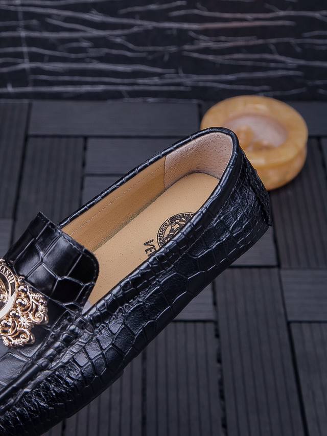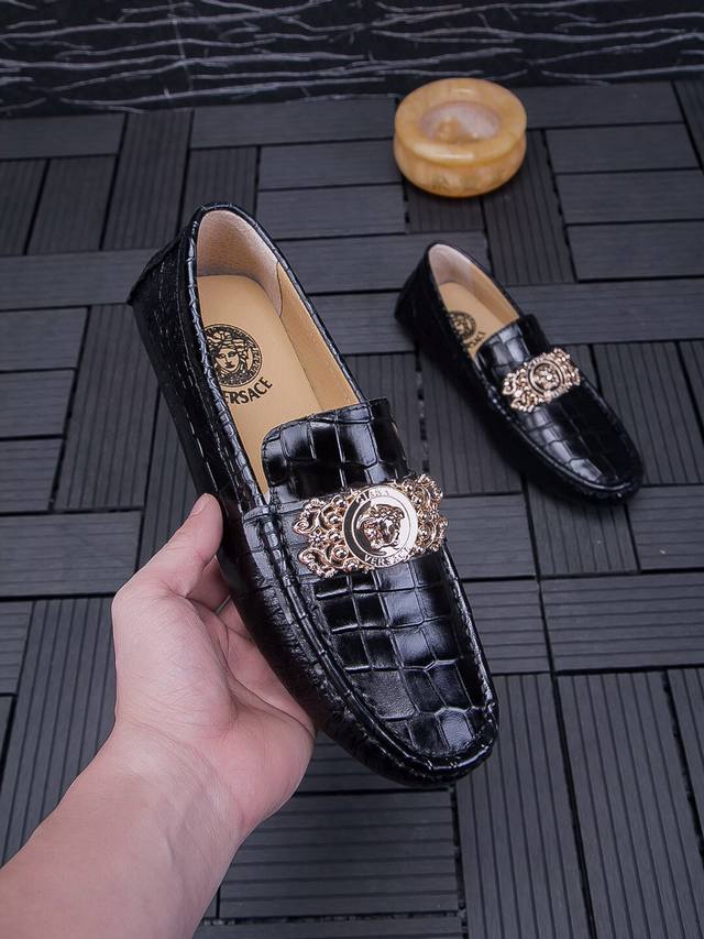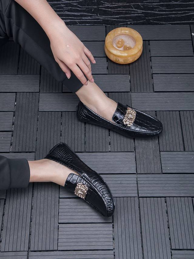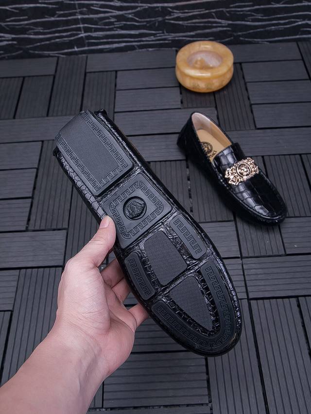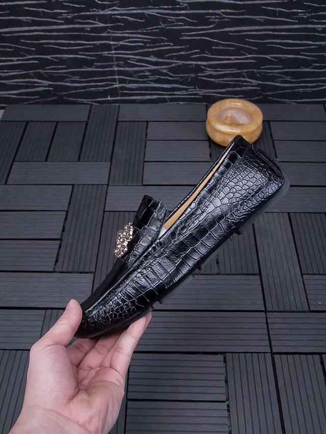 Real Price, Brand: Versace, New Official Website Model, 2026 Italian Boutique Casual Business Loafers, High-End Top-Grain Crocodile Leather Men's Shoes, 1:1 Replica from the Official Website. Italian Original Top-Grain Crocodile Leather Upper, Imported Top-Grain Cowhide Lining, High-Quality Materials, Designed by European and American Masters, Perfect Styling, Boutique Quality, Solid Color Rubber Wear-Resistant Outsole! Original Quality, Unique Design, Super Versatile and Comfortable to Wear. High-End Yet Tasteful, Fashionable and Novel!! Absolutely the Center of Attention! A Must-Have for Nightclubs, Standard Sizes 37-47 DDD