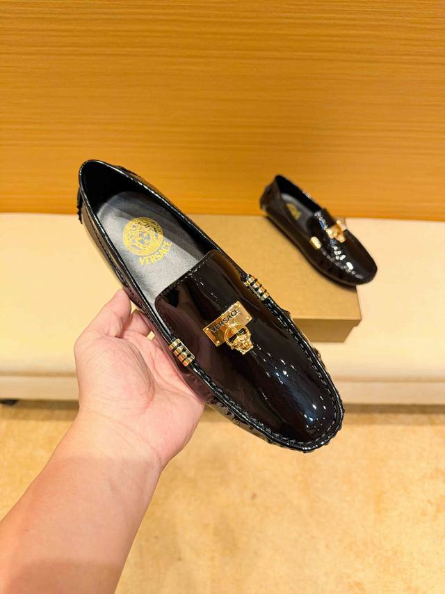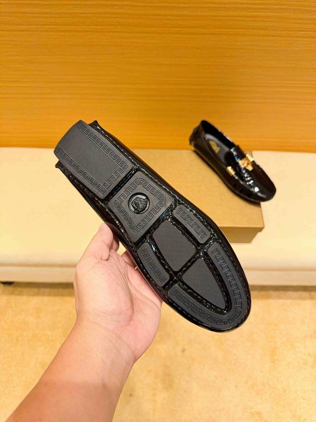 Real price, genuine materials, Versace official website original new high-end business casual driving loafers, a hot item among Italian supermodels and aristocrats, a leader in the fashion world, unparalleled, celebrity style, the upper is made of imported original patent leather + original genuine materials, French hall-of-fame style, priced at 25,870 Swiss Francs, this style is a runway piece from Paris Fashion Week, a brand can be deeply rooted in your heart, a pair of shoes can also make you linger, wearing not only nobility, but also an aura standard 37-47 DDD