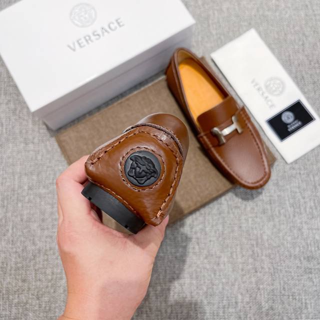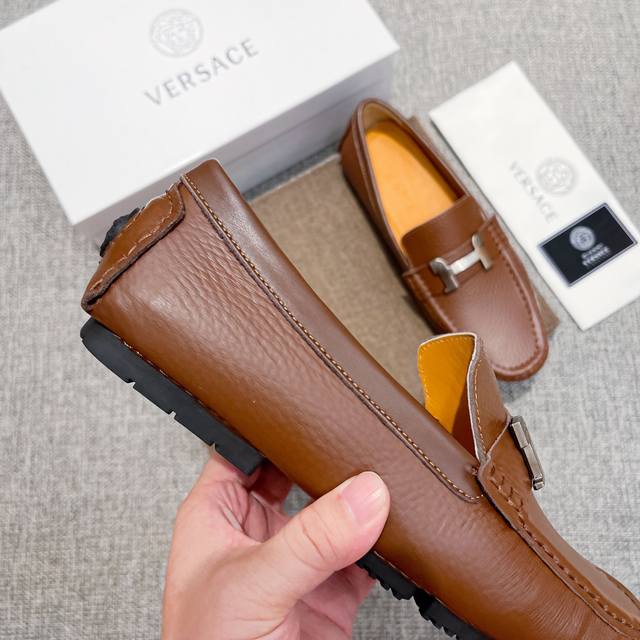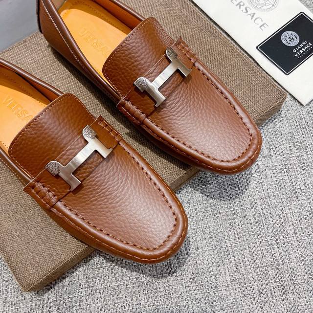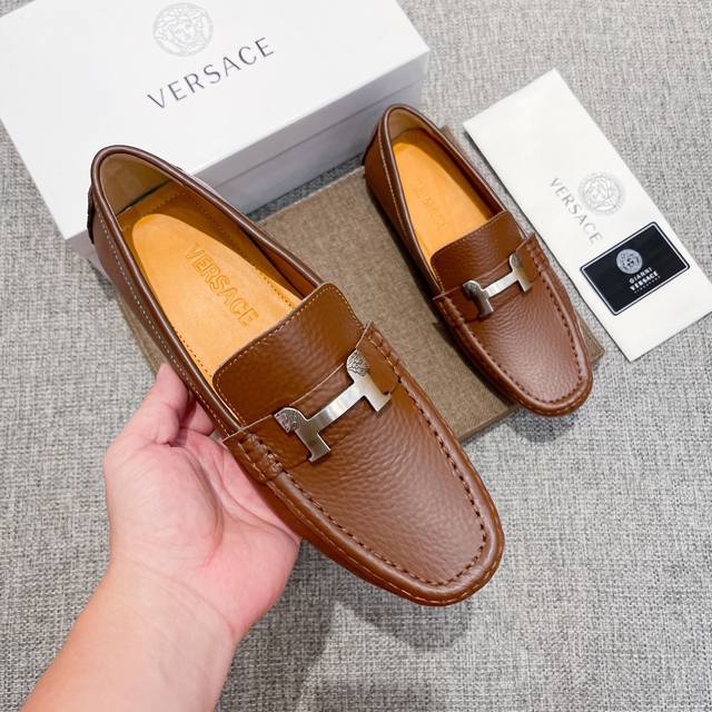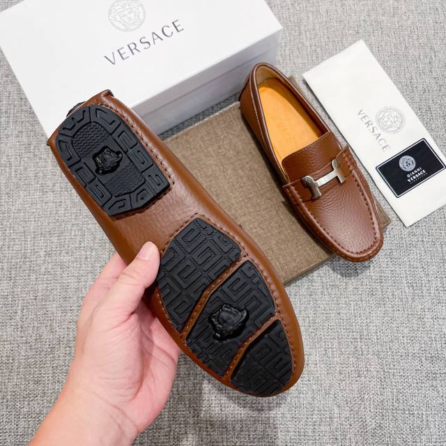 Real Price, New Arrival from Versace Official Flagship Store. Original cowhide upper with a sexy Americana logo, a men's favorite. Comfortable and breathable genuine cowhide lining, original imported wear-resistant rubber sole. Exquisite craftsmanship, beautiful and luxurious upper, a must-have for men. The refined and simple upper showcases the brand's understated elegance, suitable for all seasons. Whether focused on work, spending leisure time with family, or experiencing a sophisticated lifestyle in the city or countryside, this series can highlight true masculine charm. Strive] Standard sizes 37-47 DDD