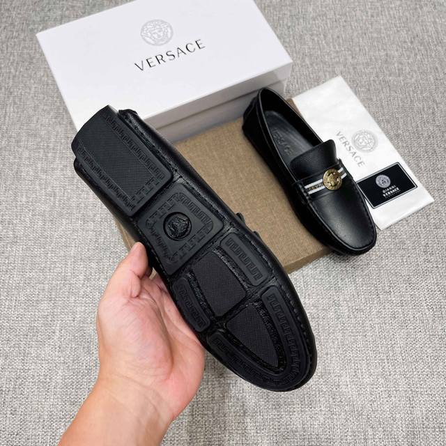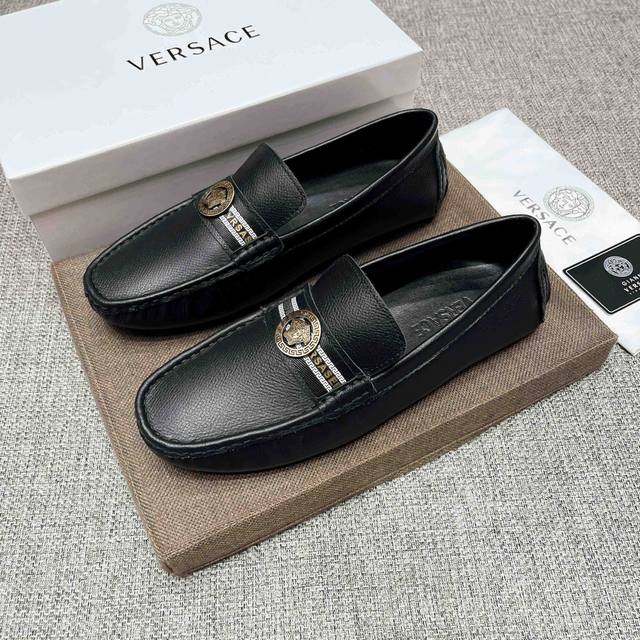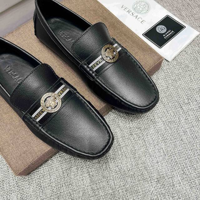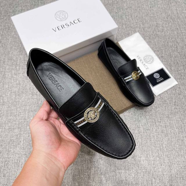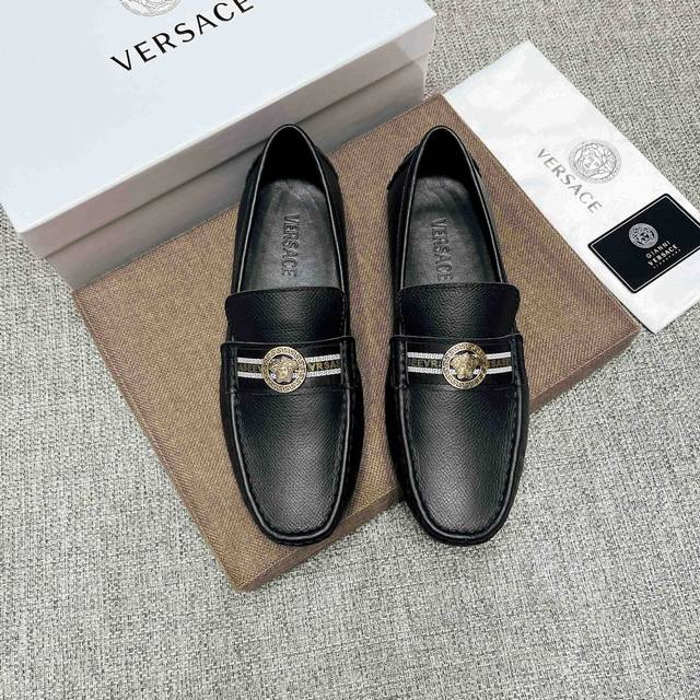 Real price, new Versace official flagship store model, original cowhide upper with sexy Mesa head logo, a men's favorite, comfortable and breathable genuine cowhide lining, original imported wear-resistant rubber sole, exquisite craftsmanship, beautiful and luxurious upper, a must-have for men, the exquisite and simple upper shows the brand's understated elegance, suitable for all seasons, whether focused on work, spending leisure time with family, or experiencing an elegant lifestyle in the city or countryside, this series can showcase true masculine charm. [Striving] Standard sizes 37-46