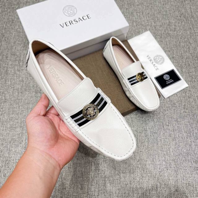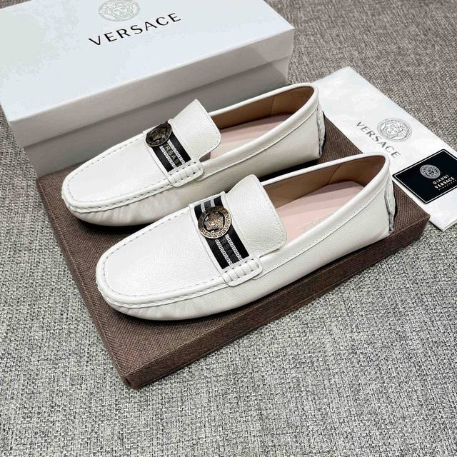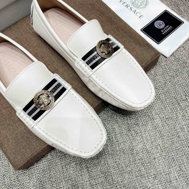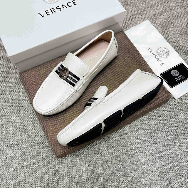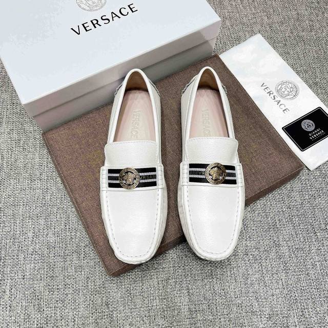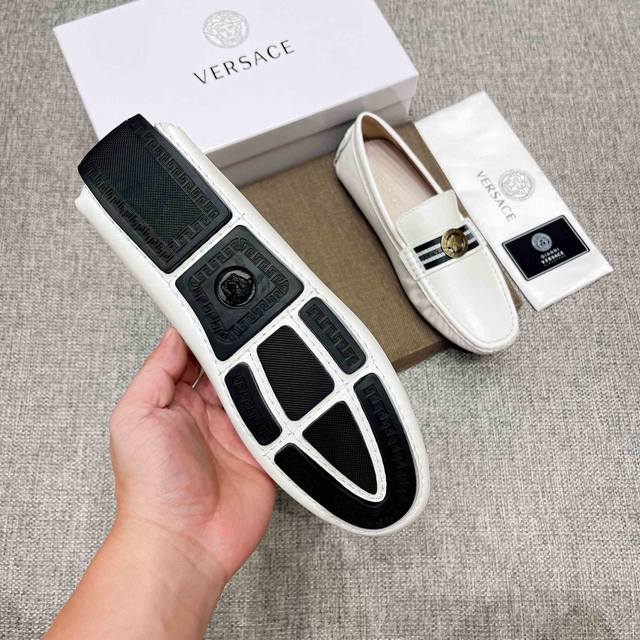 Real price, new Versace official flagship store model, original cowhide upper with sexy Mesa head logo, a men's favorite, comfortable and breathable genuine cowhide lining, original imported wear-resistant rubber sole, exquisite craftsmanship, beautiful and luxurious upper, a must-have for men, the exquisite and simple upper shows the brand's understated elegance, suitable for all seasons, whether focused on work, spending leisure time with family, or experiencing an elegant lifestyle in the city or countryside, this series can showcase true masculine charm. [Striving] Standard sizes 37-46