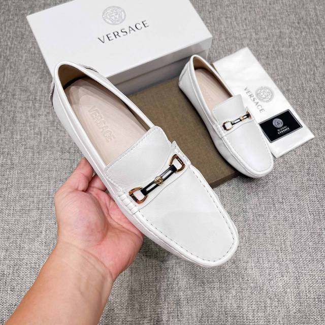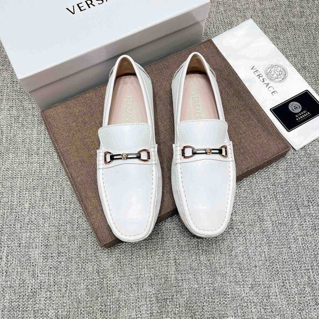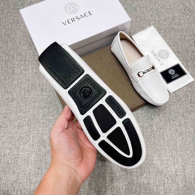Real price, new Versace official flagship store model, original cowhide upper with sexy Mesa head logo, a men's favorite, comfortable and breathable genuine cowhide lining, original imported wear-resistant rubber sole, exquisite craftsmanship, beautiful and luxurious upper, a must-have for men, the exquisite and simple upper shows the brand's understated elegance, suitable for all seasons, whether focused on work, spending leisure time with family, or experiencing an elegant lifestyle in the city or countryside, this series can showcase true masculine charm. [Striving] Standard sizes 37-46