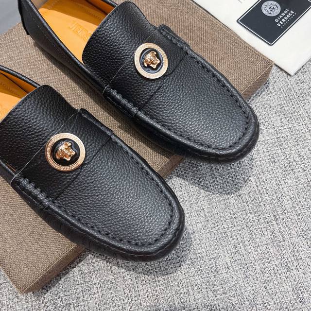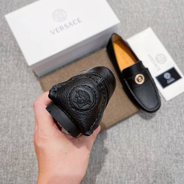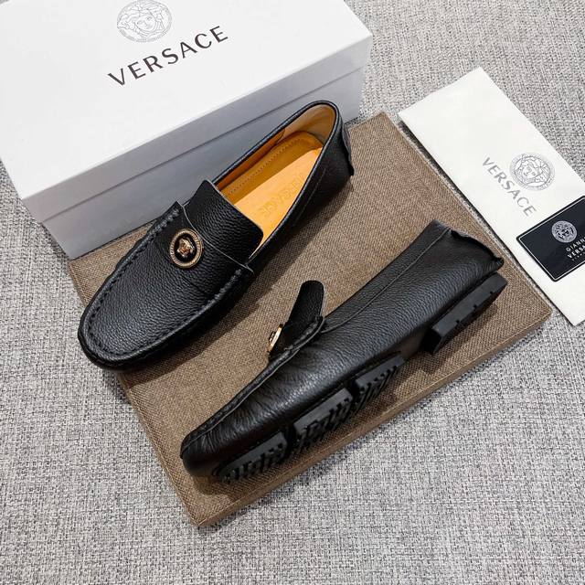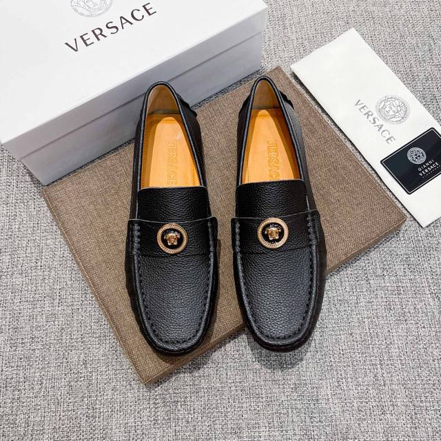 Real price, new Versace official flagship store model, original cowhide upper with sexy Americana head logo, a men's favorite, comfortable and breathable genuine cowhide lining, original imported wear-resistant rubber sole, exquisite craftsmanship, beautiful and luxurious upper, a must-have for men, the exquisite and simple upper shows the brand's understated elegance, suitable for all seasons, whether focused on work, spending leisure time with family, or experiencing an elegant lifestyle in the city or countryside, this series can showcase true masculine charm. [Striving] Standard sizes 37-46