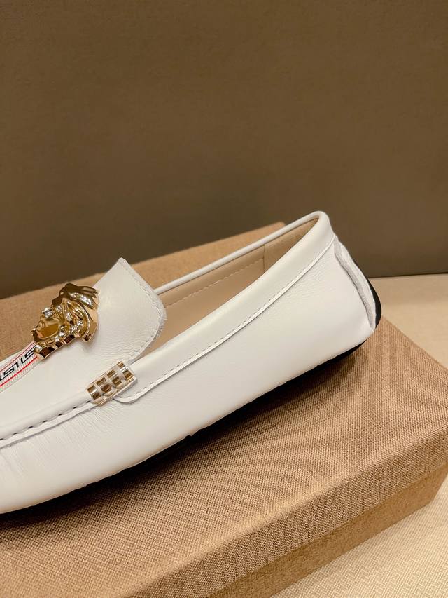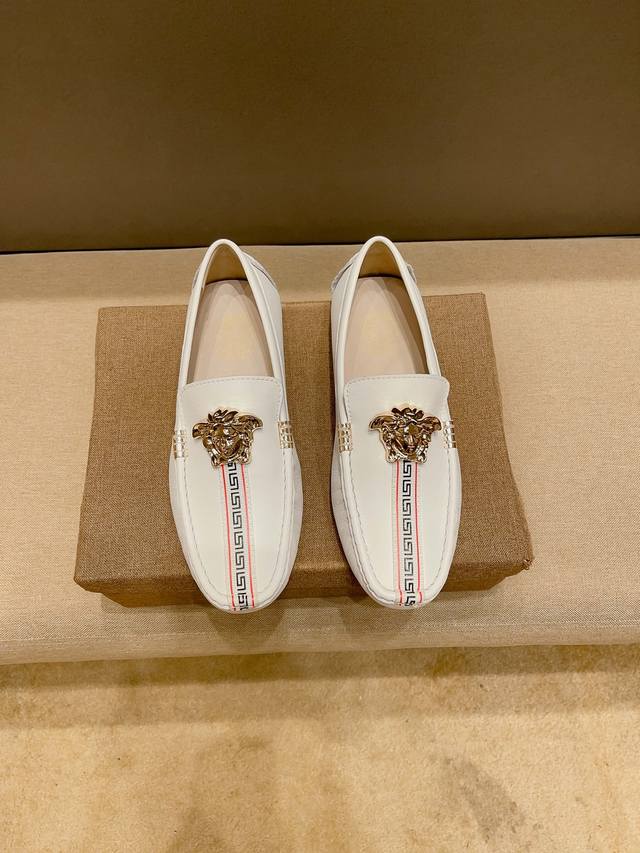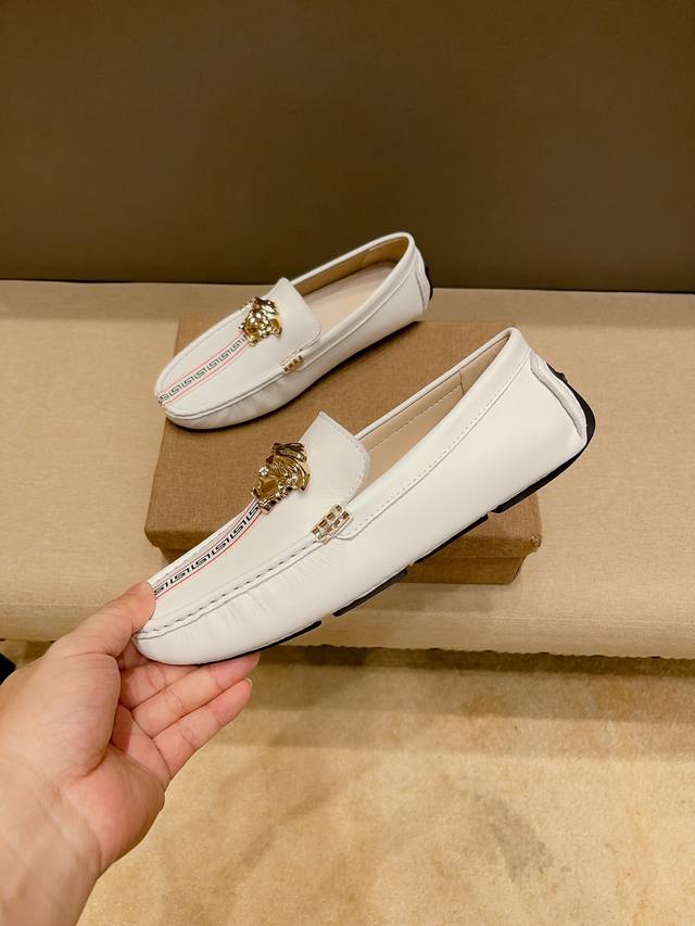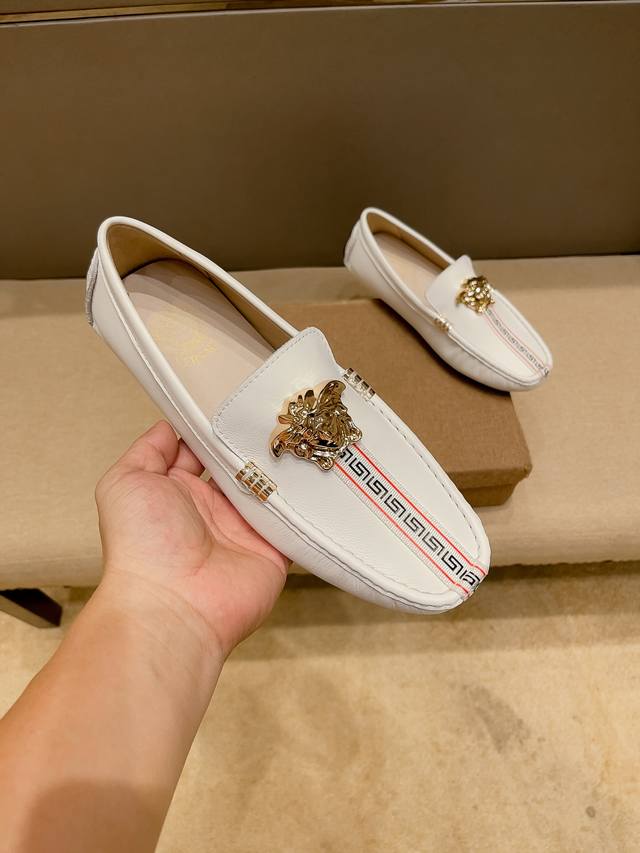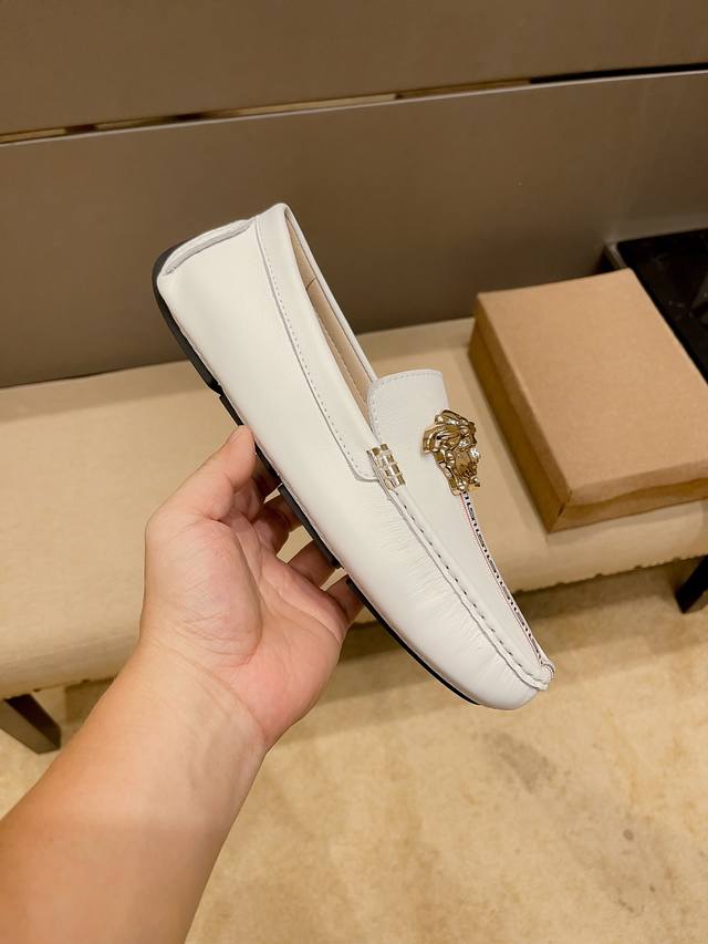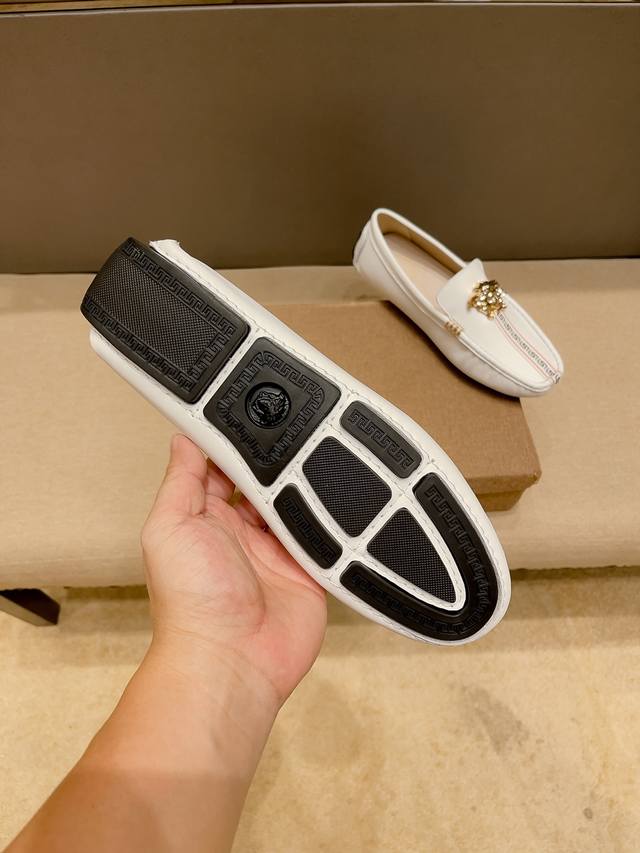 Real price, new Versace official flagship store model, original cowhide upper with sexy Mesa head logo, a men's favorite, comfortable and breathable genuine cowhide lining, original imported wear-resistant rubber sole, exquisite craftsmanship, beautiful and luxurious upper, a must-have for men, the exquisite and simple upper shows the brand's understated elegance, suitable for all seasons, whether focused on work, spending leisure time with family, or experiencing an elegant lifestyle in the city or countryside, this series can showcase true masculine charm. [Striving] Standard sizes 37-46