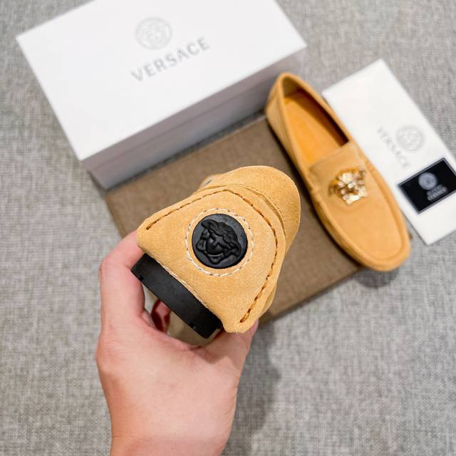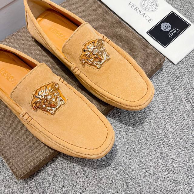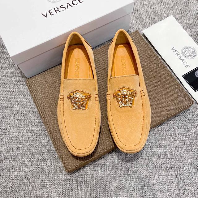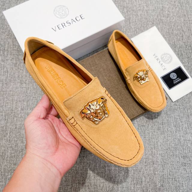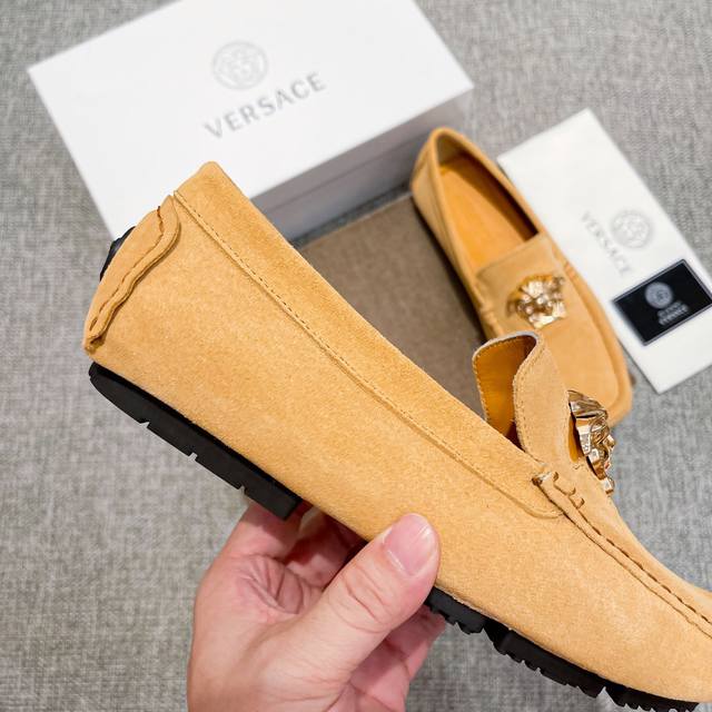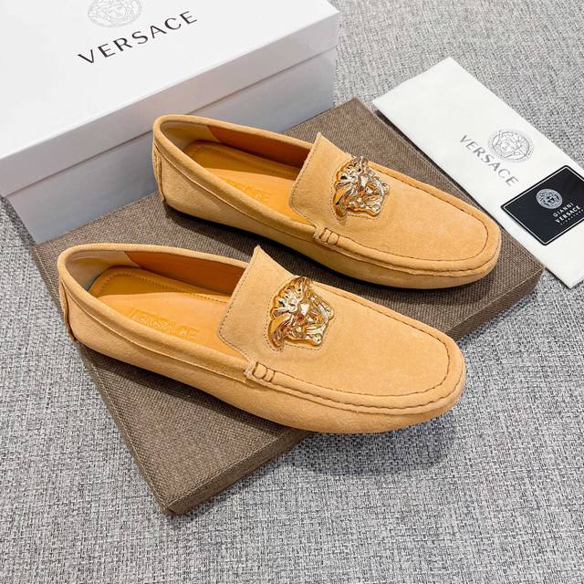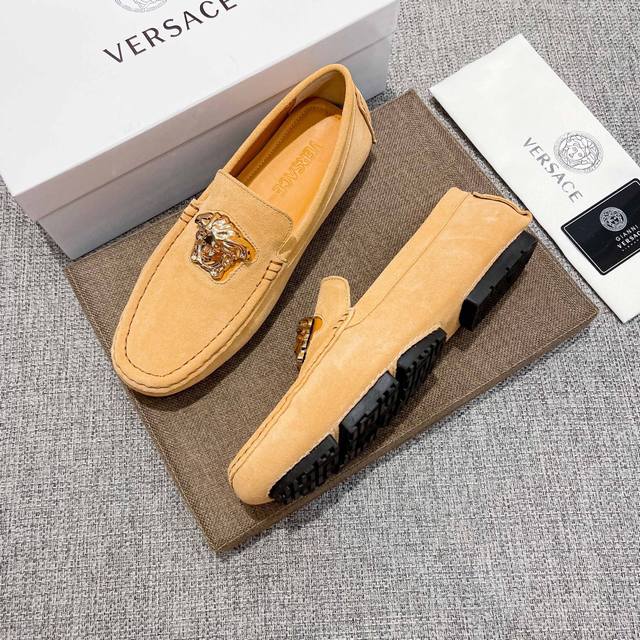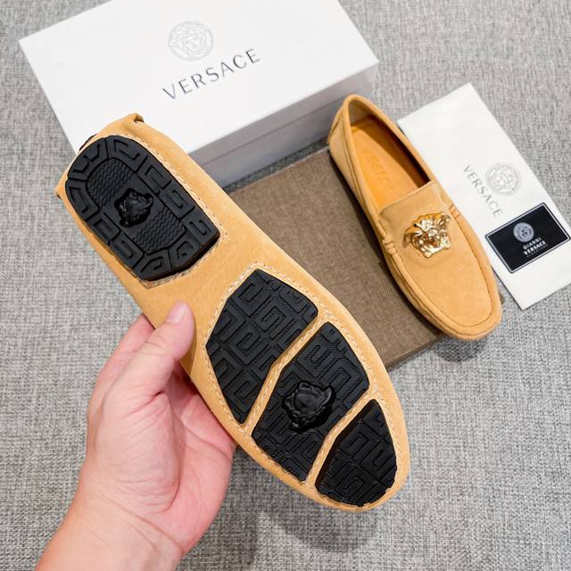 This is a high-end, best-selling Versace driving shoe from the official website. The upper is made of top-grain imported high-gloss cowhide, exuding luxury and sophistication. The lining is also made of genuine top-grain cowhide, and the sole is made of original imported durable rubber. A classic choice for men's elegance, this shoe features exquisite craftsmanship and comfortable wear. The sexy design of the upper showcases the brand's understated elegance and high-end style. Whether you're focused on work, spending leisure time with family, or experiencing a refined lifestyle in the city or countryside, this series embodies true masculine charm. [Striving] Standard sizes 37-46