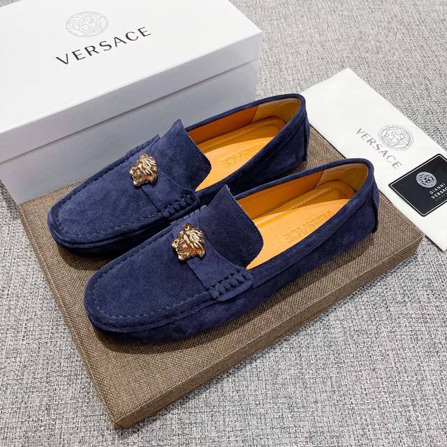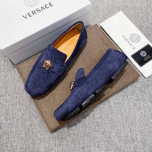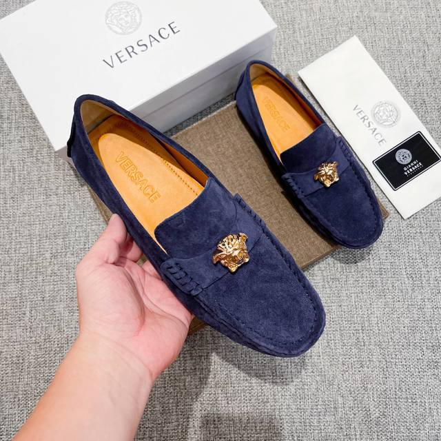 This is a high-end, best-selling Versace driving shoe from the official website. The upper is made of top-grain imported high-gloss cowhide, luxurious and high-end. The lining is made of genuine top-grain cowhide, and the sole is made of original imported durable rubber. A classic choice for men's elegance, crafted with exquisite workmanship. Comfortable to wear. The sexy design of the upper showcases the brand's understated elegance and high-end style. Whether you're focused on work, spending leisure time with family, or experiencing a refined lifestyle in the city or countryside, this series exudes true masculine charm. [Striving] Standard sizes 37-46