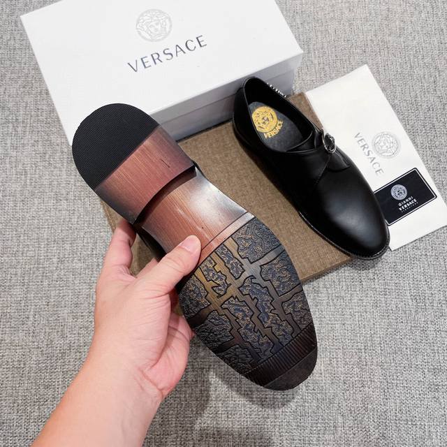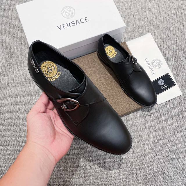 This is a high-end, popular casual business loafer style men's leather shoe from the Versace official website. The upper is made of imported top-grain cowhide, with a top-grain sheepskin lining, exuding luxury and high-end quality. It features an original imported wear-resistant rubber sole. A classic choice for men's elegance, crafted with exquisite workmanship. Comfortable to wear. The sexy design of the upper showcases the brand's understated elegance and high-end style. Whether you're focused on work, spending leisure time with family, or experiencing a refined lifestyle in the city or countryside, this series highlights true masculine charm. [Striving] Standard sizes 37-46 DDD