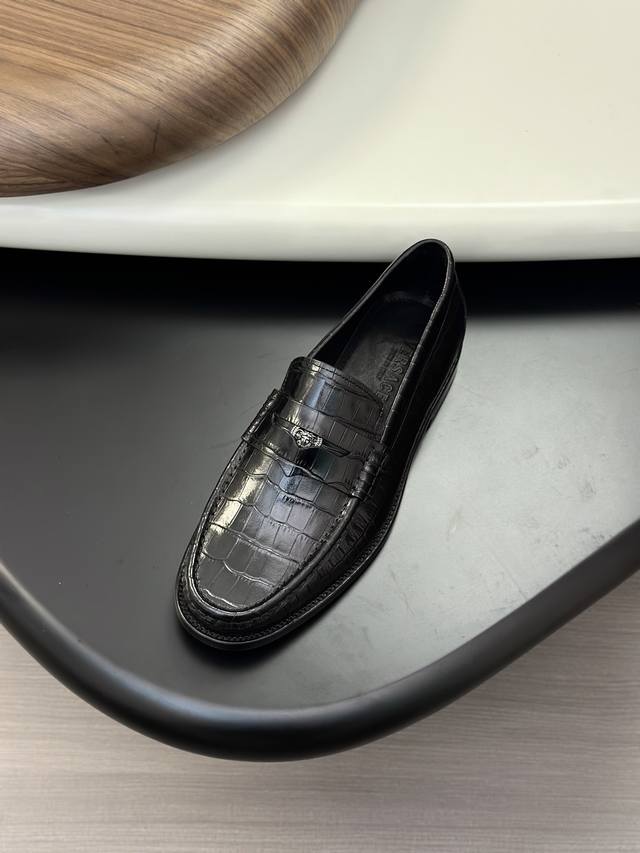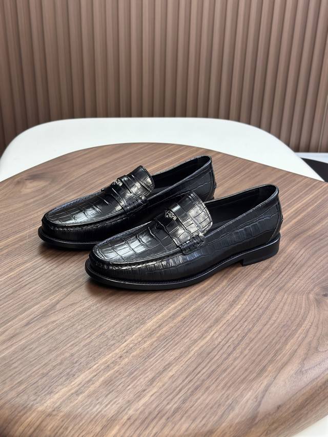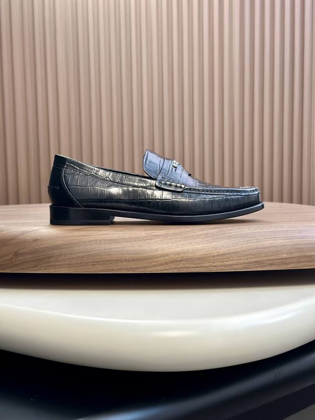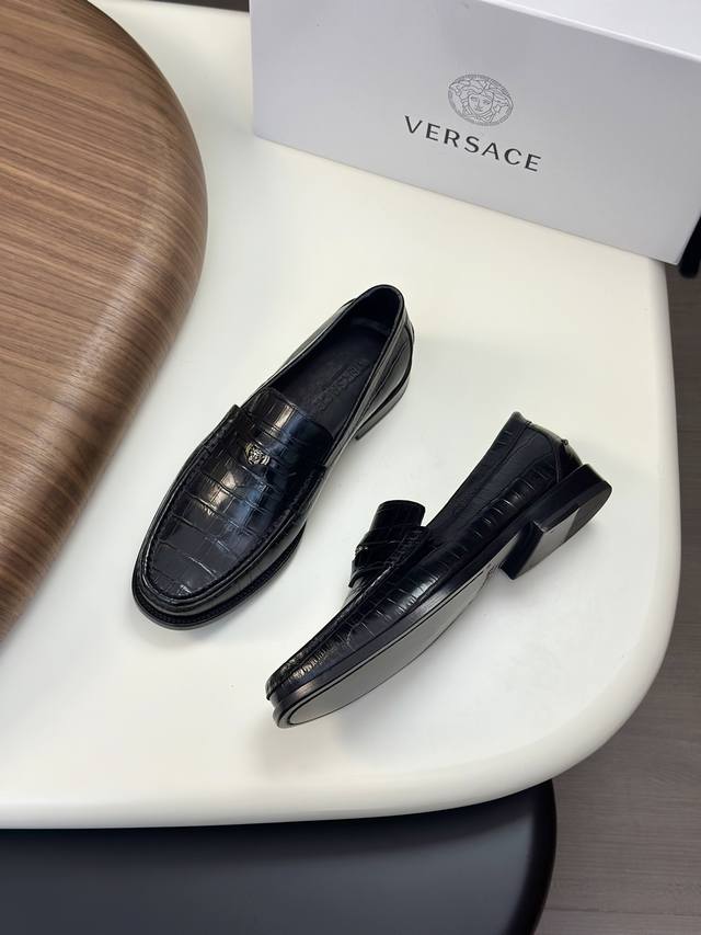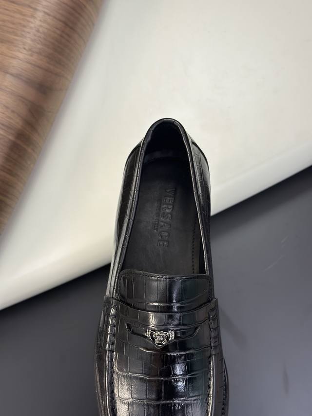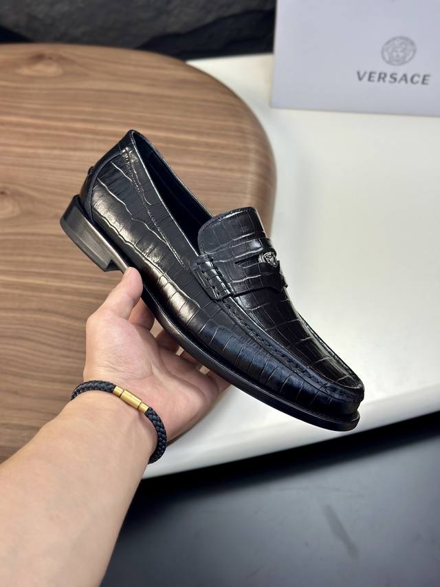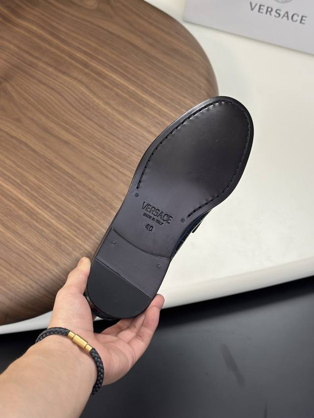 versac* Versace men's leather shoes, the same style as the runway, imported top-grain cowhide upper, cowhide lining, low-key simple lines and Greek key pattern, simple and elegant, the ultimate original leather outsole, very personalized!