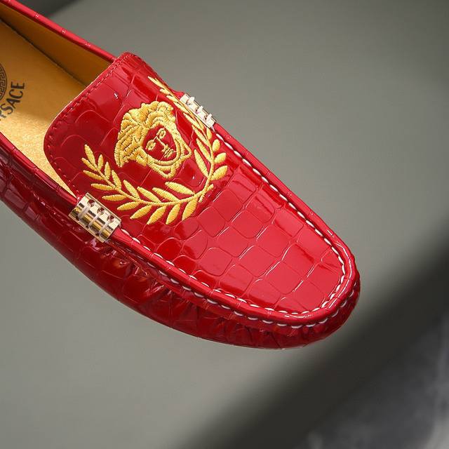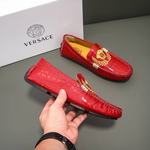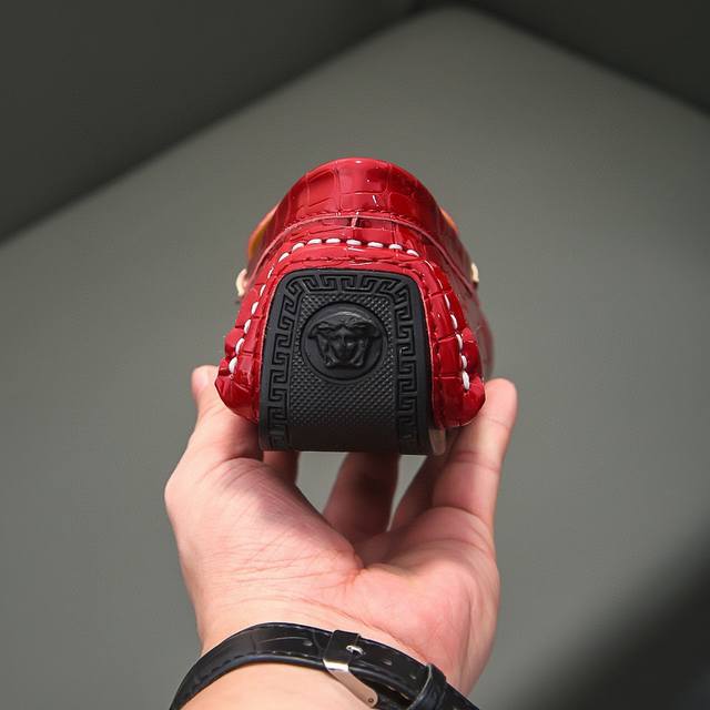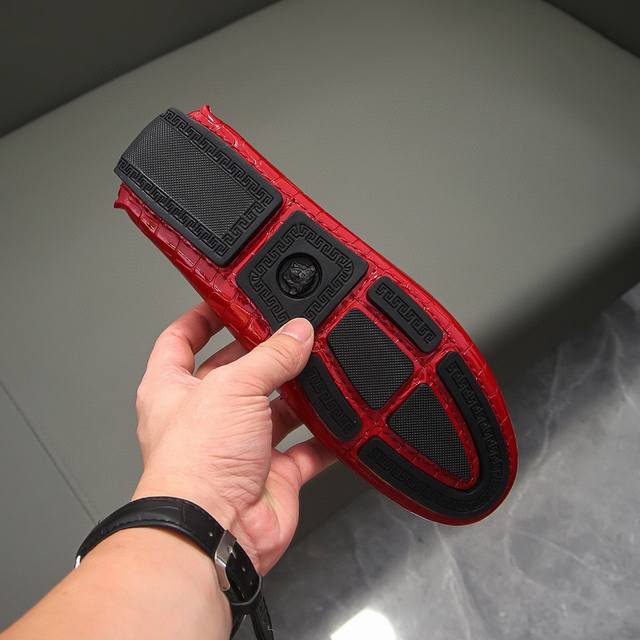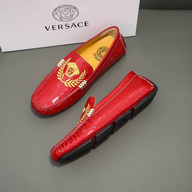 Versace brand, official original, top-grain imported cowhide upper + Medusa's fatal allure head, a must-have for men, irresistible playful]. Top-grain cowhide lining, original imported wear-resistant rubber sole, official product, exquisite and elegant, a must-have for men, comfortable to wear. The exquisite upper showcases the brand's understated elegance, a classic for all seasons. Whether focused on work, enjoying leisure time with family, or experiencing a refined lifestyle in the city or countryside, this series exudes true masculine charm striving]. Standard sizes 37-47 DDD
