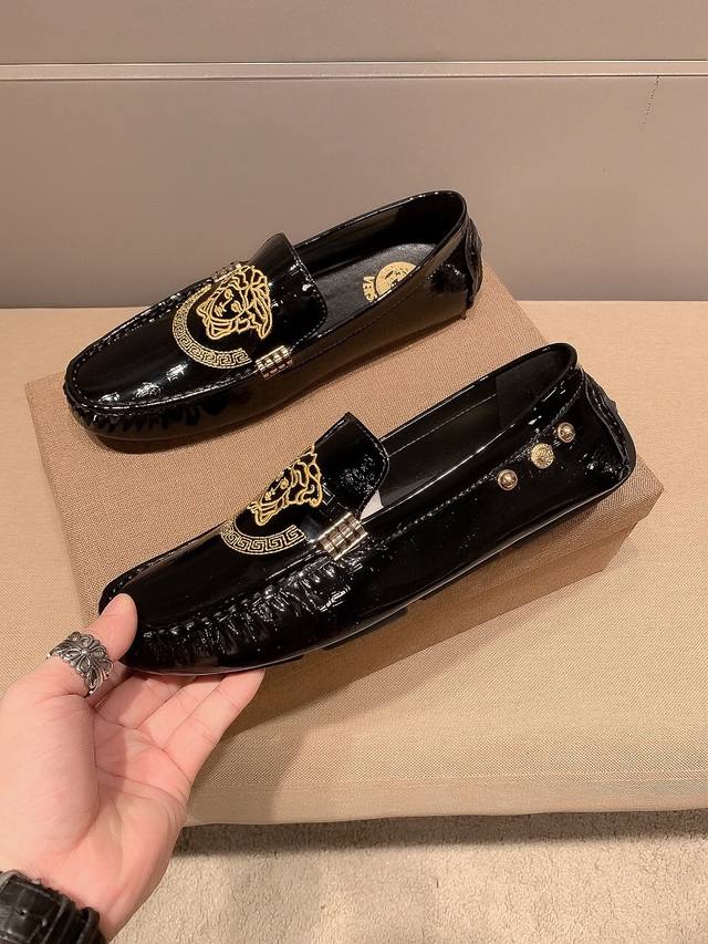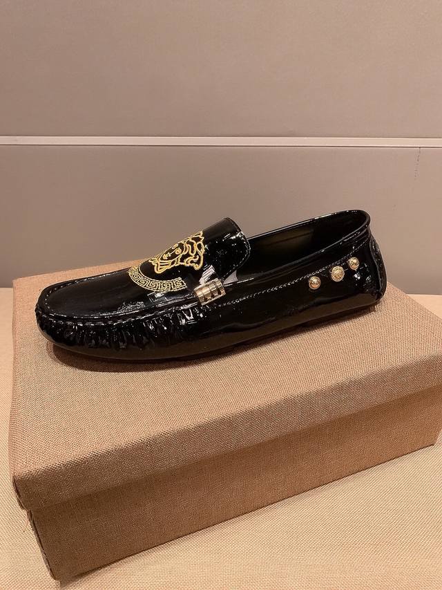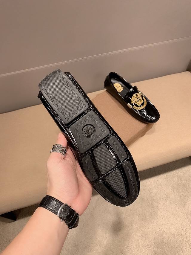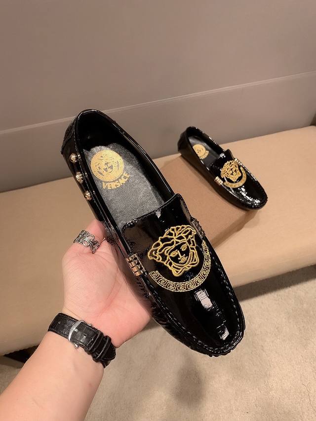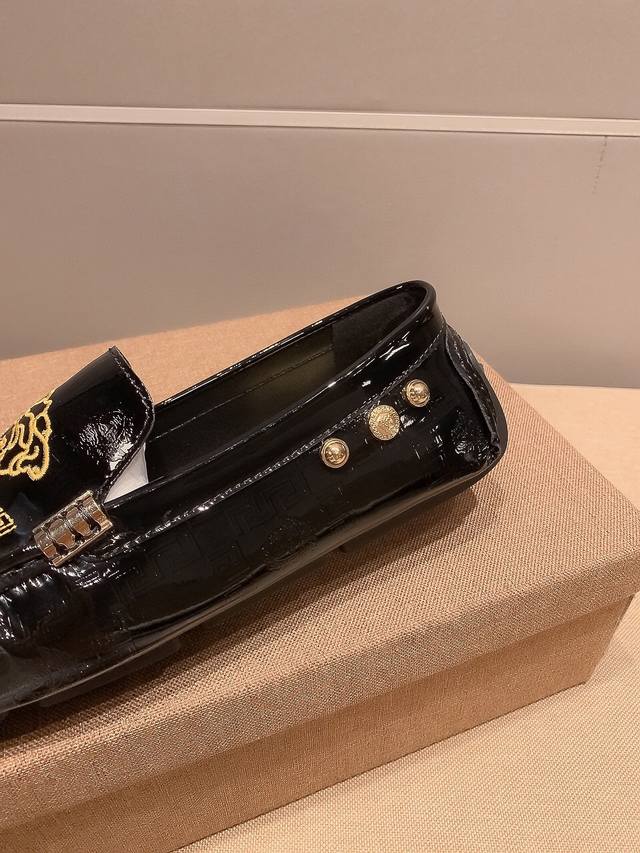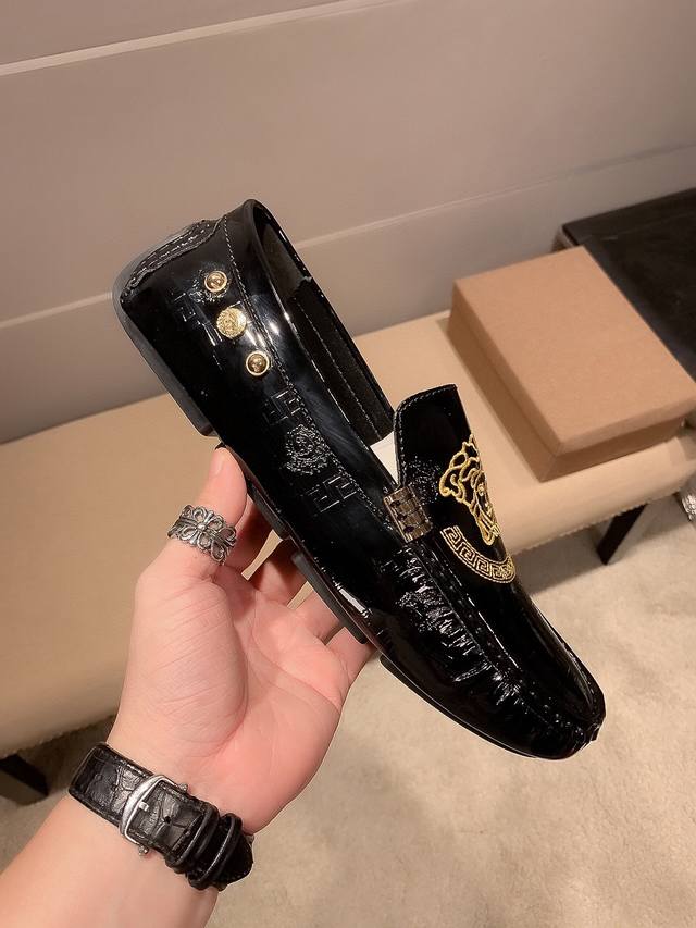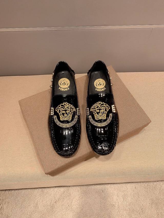 Versace is extraordinary, stunning, and another masterpiece. Versace has created a unique fashion empire that has taken the world by storm. The upper is made of imported cowhide leather, embroidered with the Versace logo, and three Versace-branded metal buckles on the side. It's incredibly stylish and elegant. The lining is a unique and beautiful, permanent black cowhide lining. This commemorative World Cup model is a great way to look good in any occasion. Owning an official Versace men's shoe is a surefire way to win attention! Standard sizes 37-45