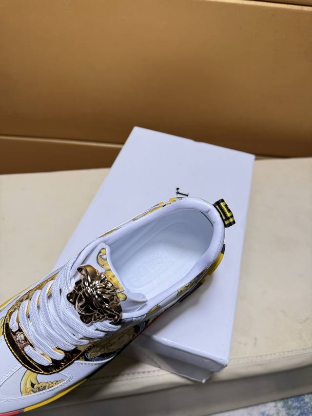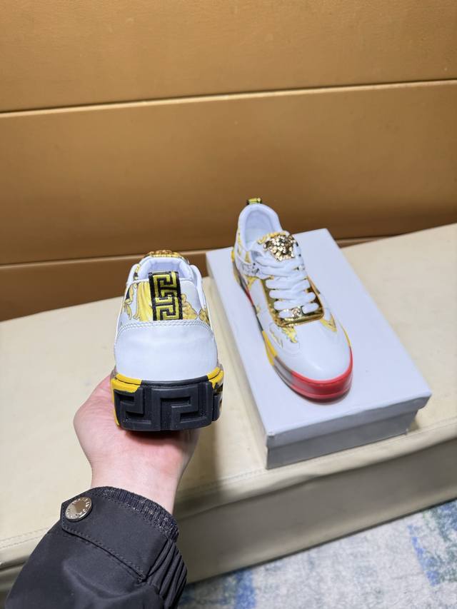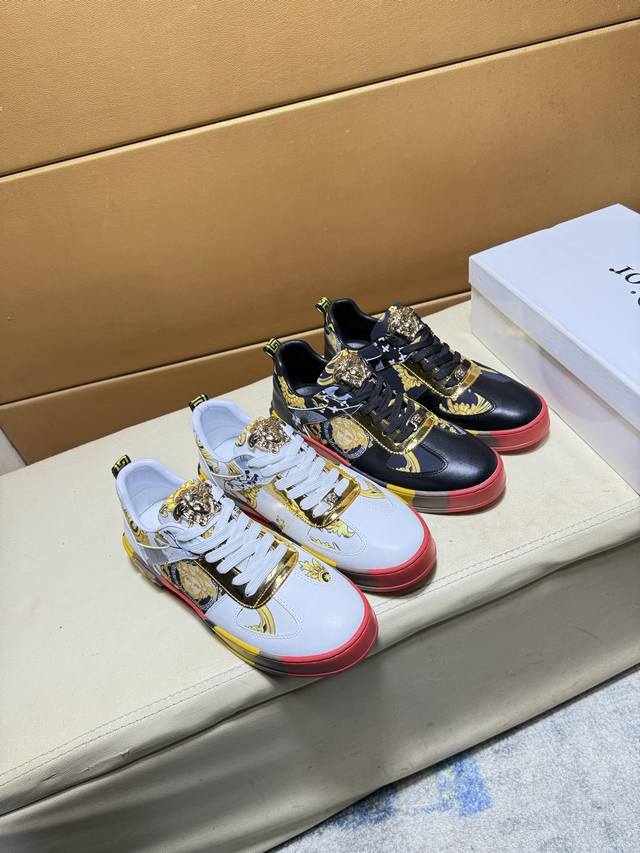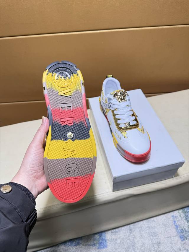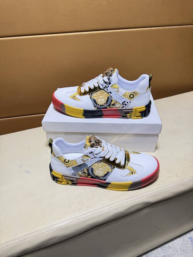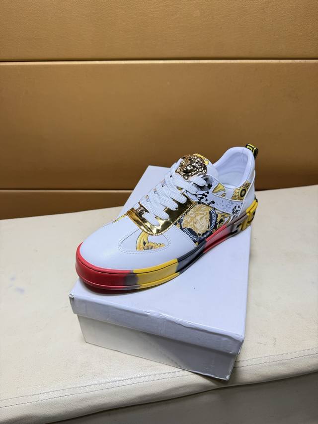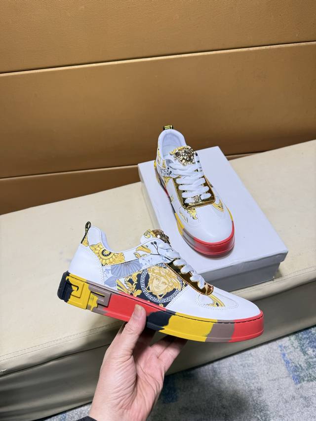 Versace original quality. Unique modern style sneakers. A must-have casual shoe for trendy men. Italian imported original brand, imported original leather, sheepskin lining to prevent fading and chafing. Sole: original factory supply, French lazy style design, fits snugly to the foot, original quality, super comfortable original sole. Just like the real product photos, even better in person. High-quality sneakers, men's sizes: 38-44.