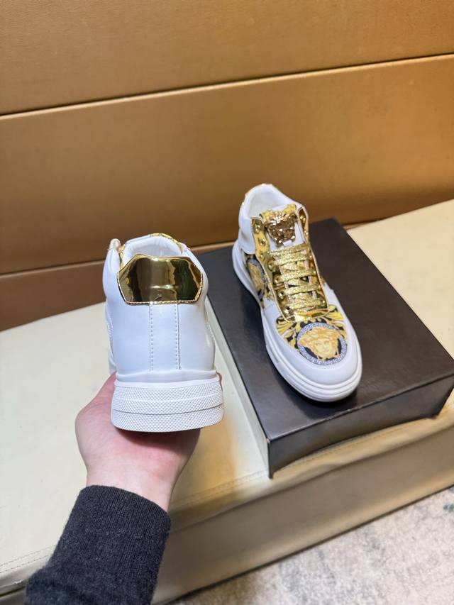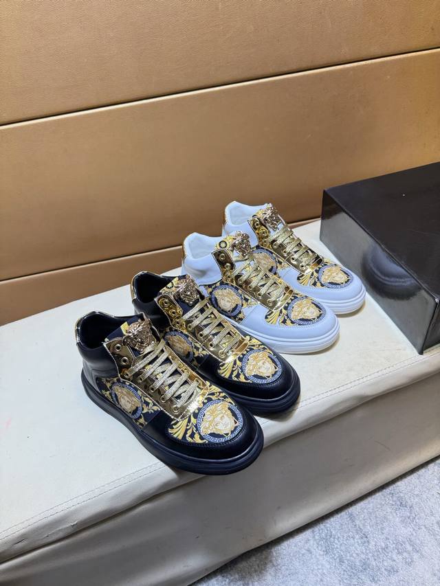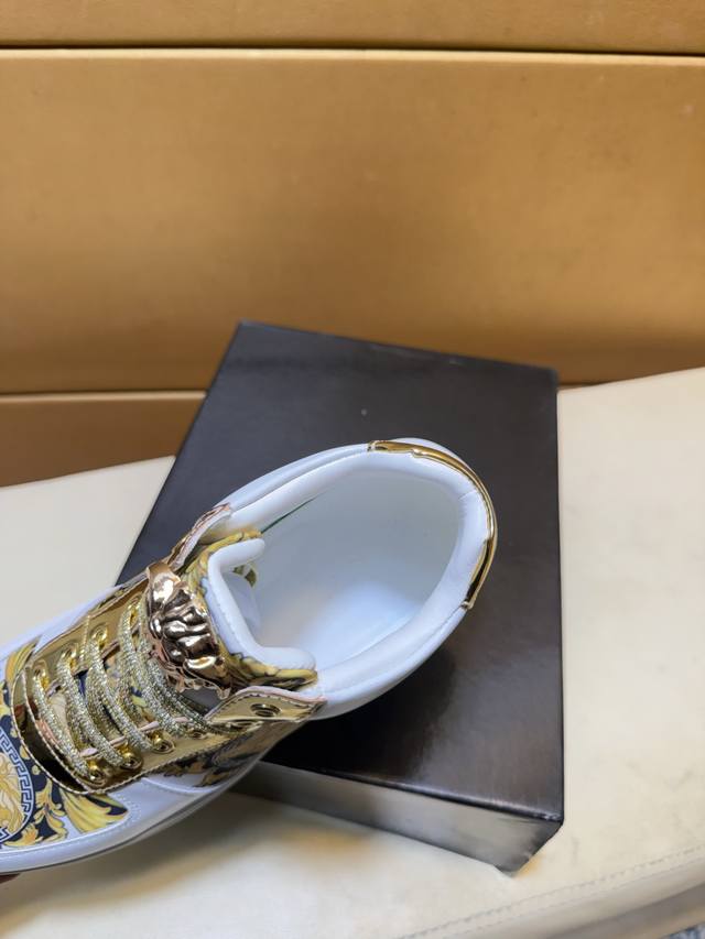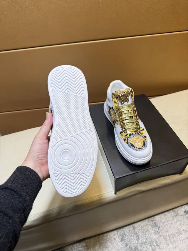 Versace original quality. Unique modern style sneakers. A must-have casual shoe for trendy men. Italian imported original brand, imported original leather, sheepskin lining to prevent fading and chafing. Sole: original factory supply, French lazy style design, fits snugly to the foot, original quality, super comfortable original sole. Just like the real product photos, even better in person. High-quality sneakers. Wan men's shoe sizes: 38-44 DDD