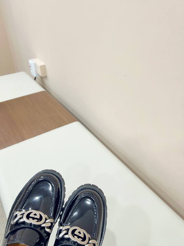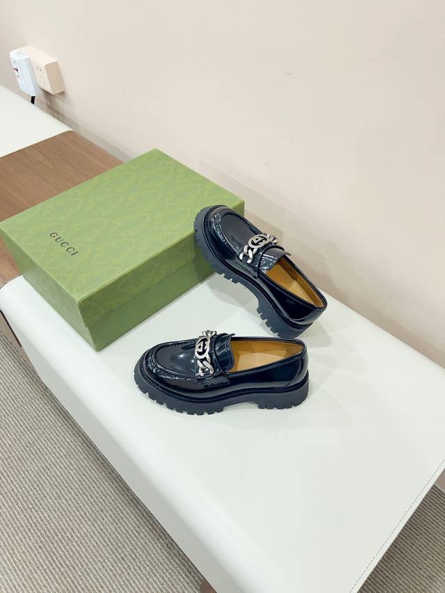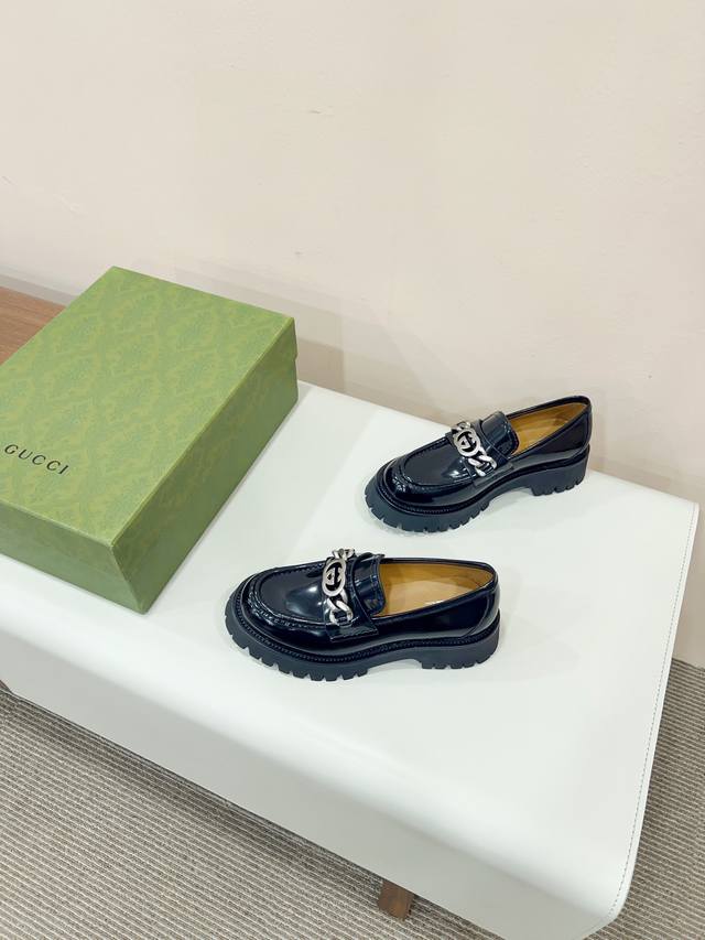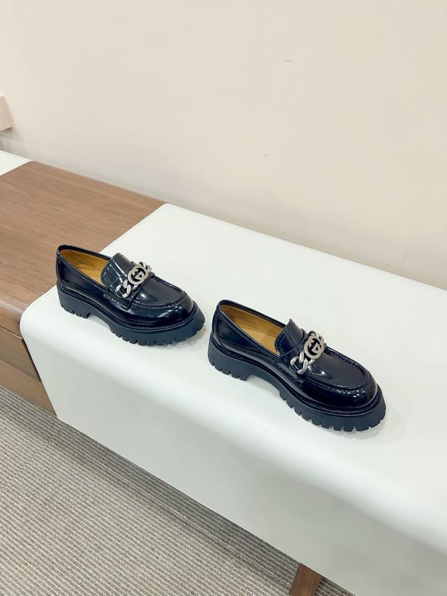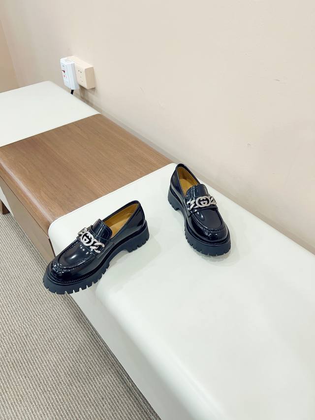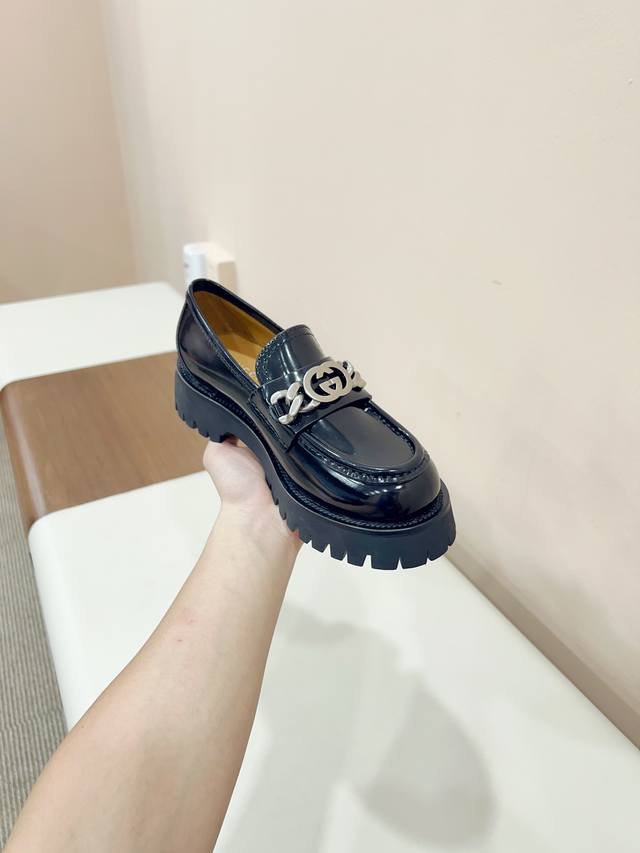 Gucc*'s latest hot Fw silver buckle thick-soled loafers