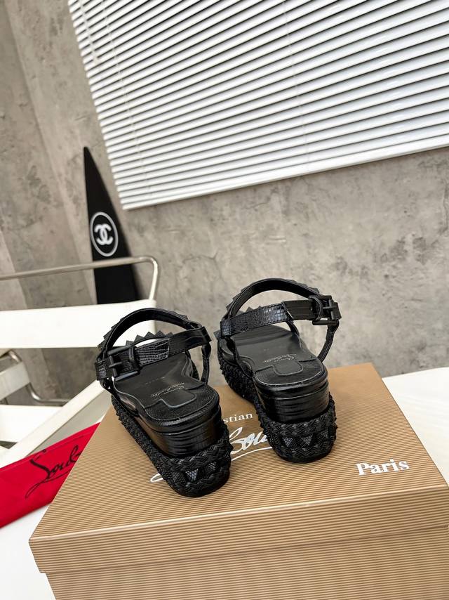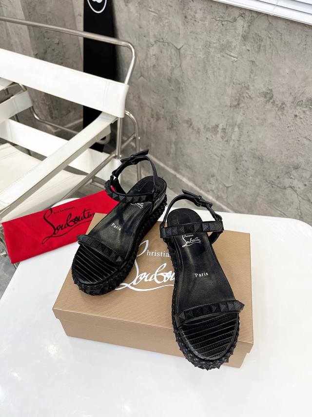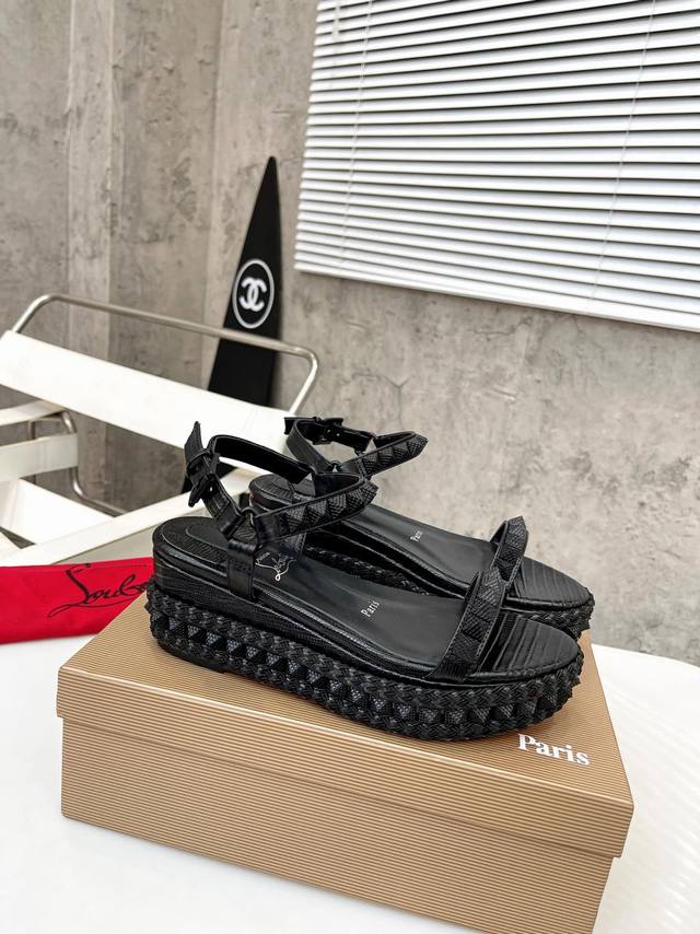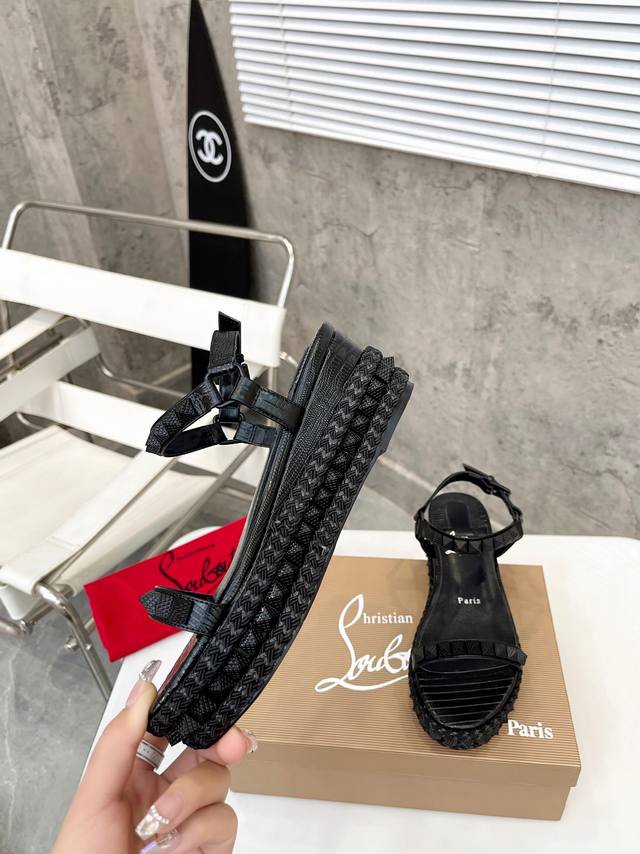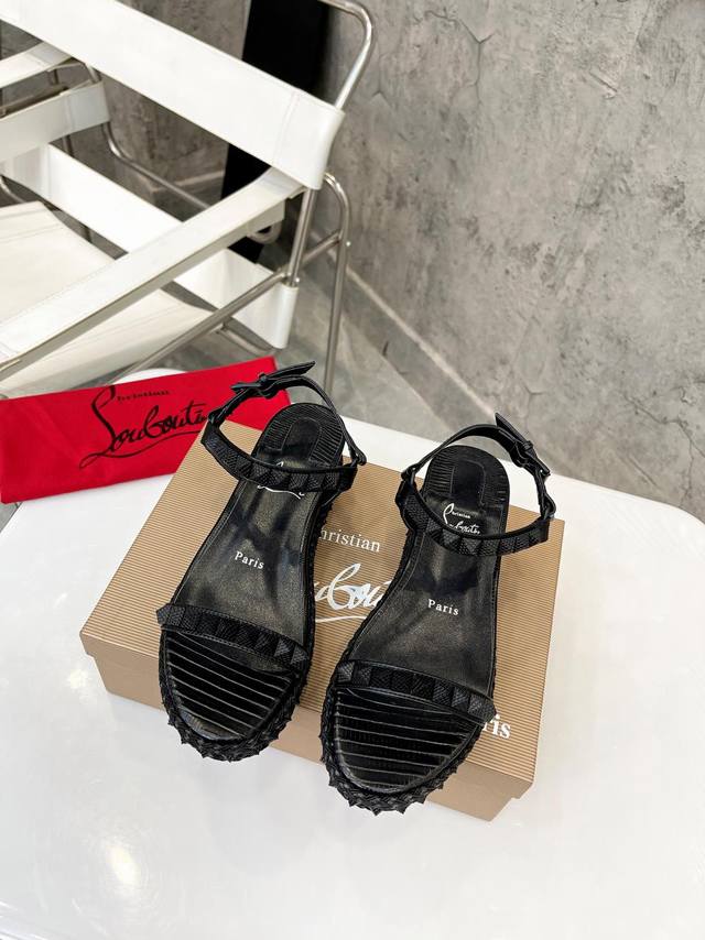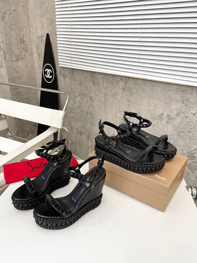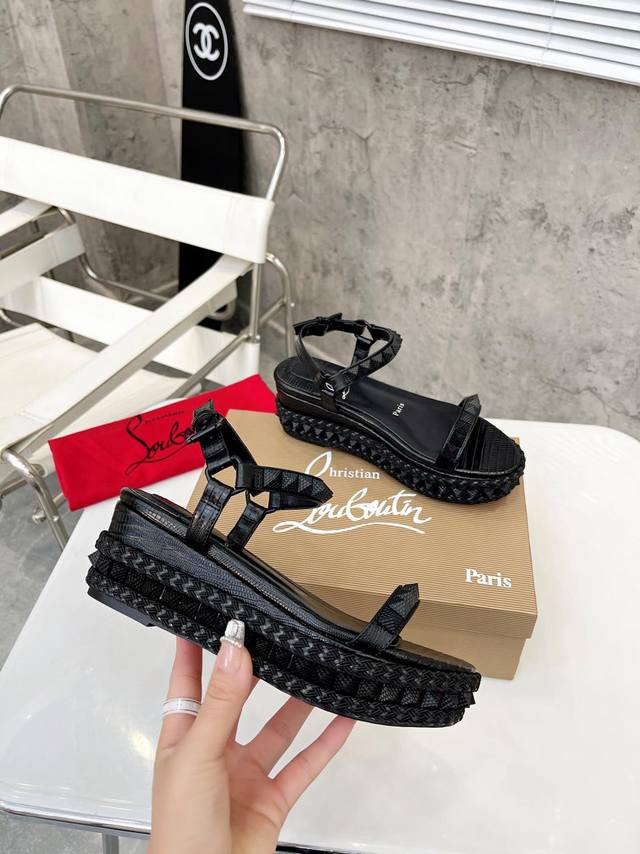 Spring and summer red sole 6Com thick sole 12Com wedge heel classic style sandals have added new colors. Official website color is full, super eye-catching weapon 130+ pearls, fantasy color, square rivets, queen or lady, plump or slender, all Hoid live fabric, first layer of cow and sheep leather, sheep Beijing foot pad sheep leather. Can make real leather sole 40-41 size, it takes 1 to 3 days to make it. Note: Customized products are not refundable or exchanged unless there is a quality problem. Standard size 34-41