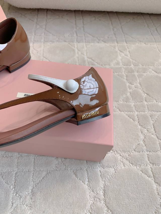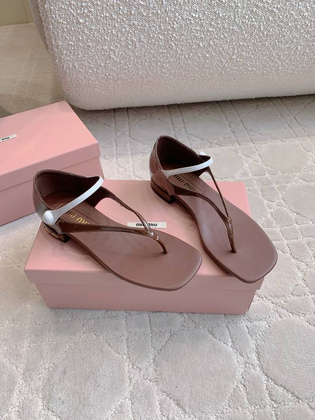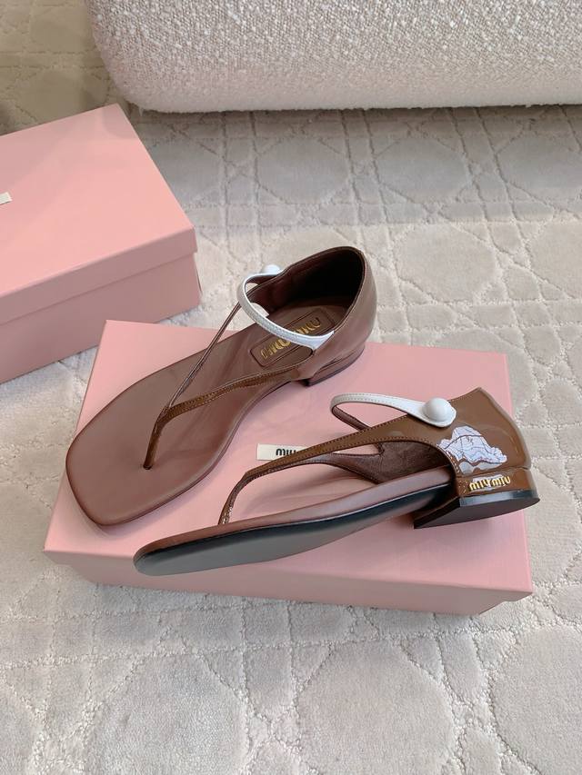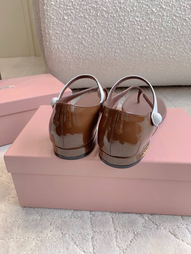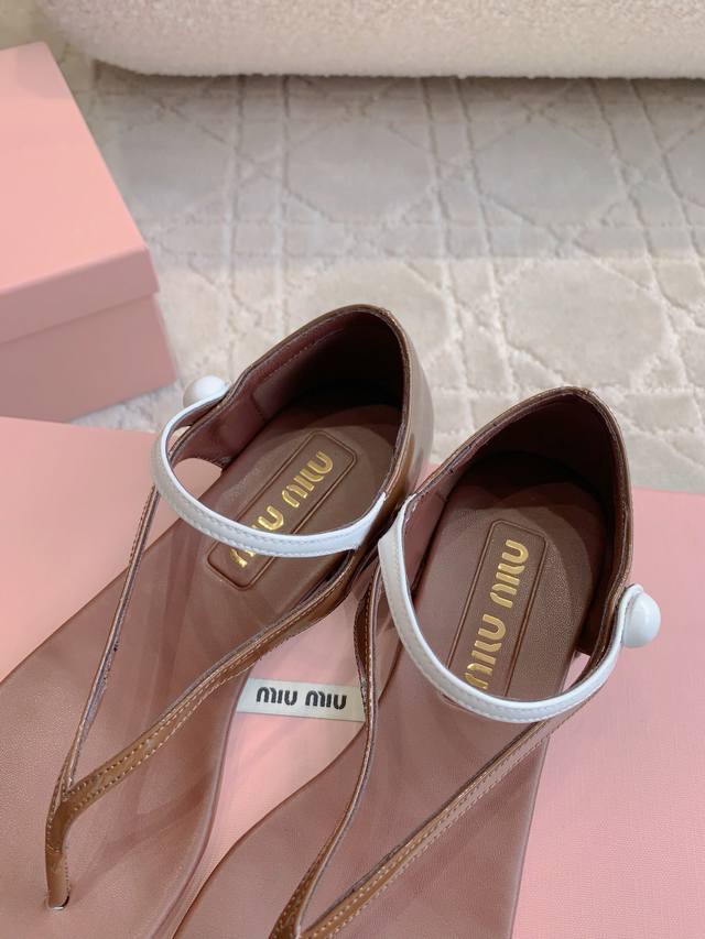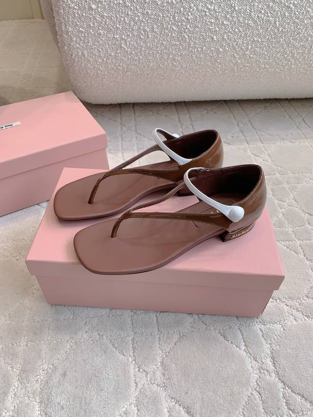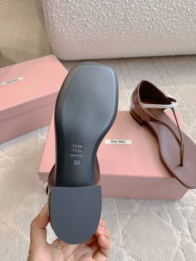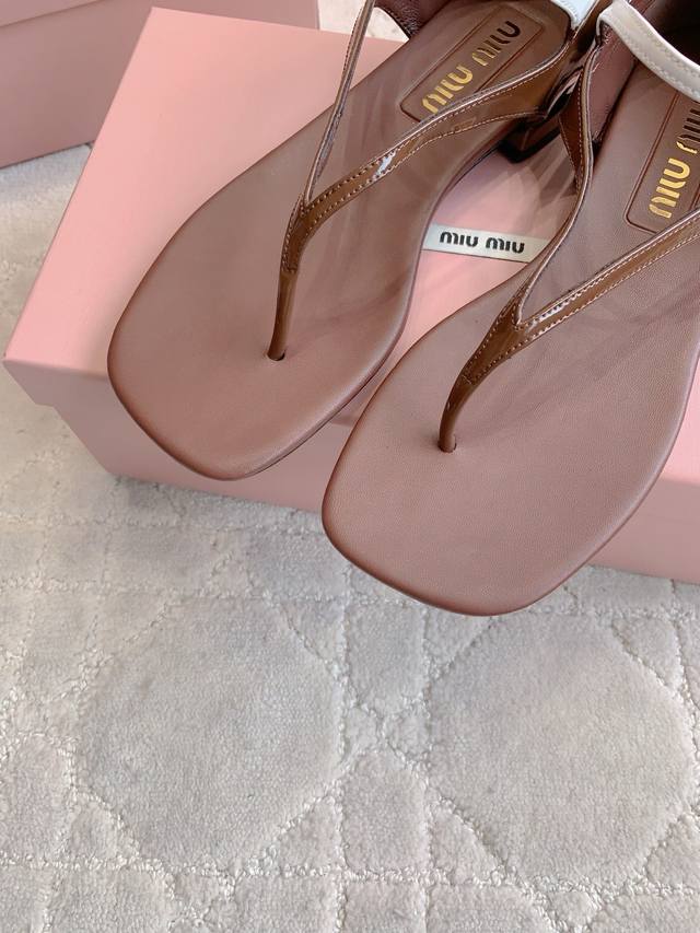 Miu catwalk new Mary Jane thong sandals Classic color matching heel classic logo embellishment low-key and exquisite well-behaved and age-reducing