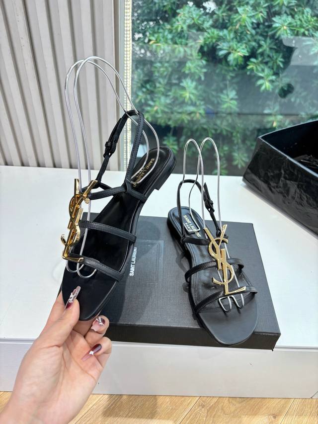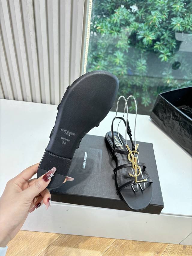 G988 What you see is what you get Saint Lauren*Ysl classic large logo flat sandals! This pair of sandals is definitely the most beautiful in my shoe cabinet.