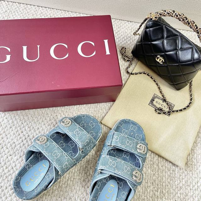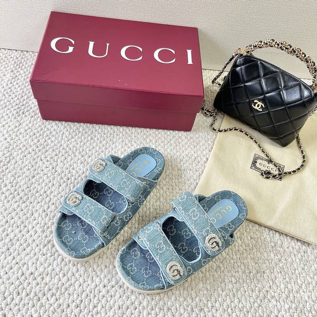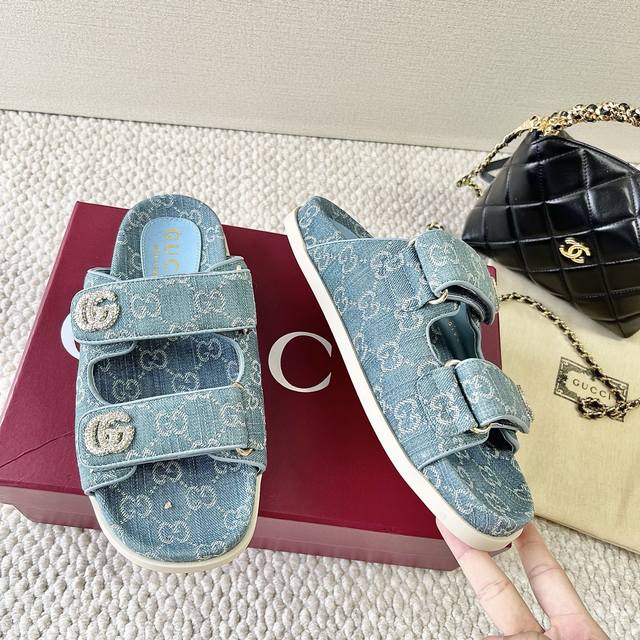 Gucci 25th year new G double G Velcro thick-soled sandals and slippers Regular s