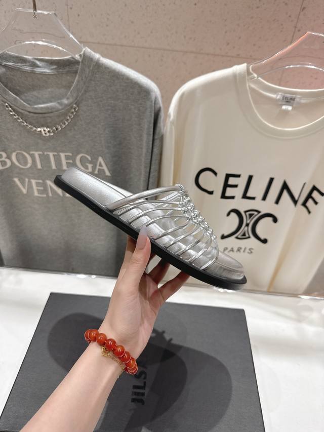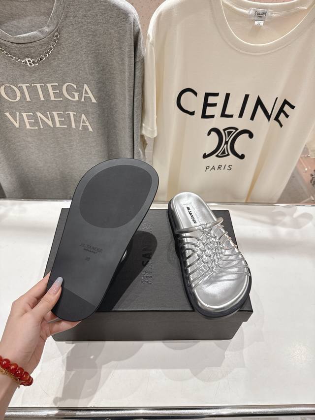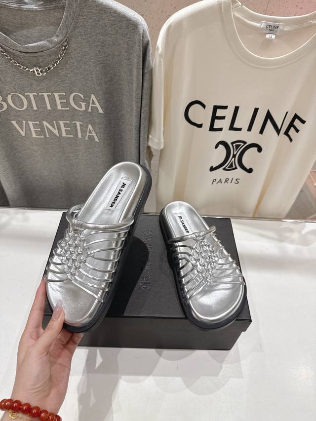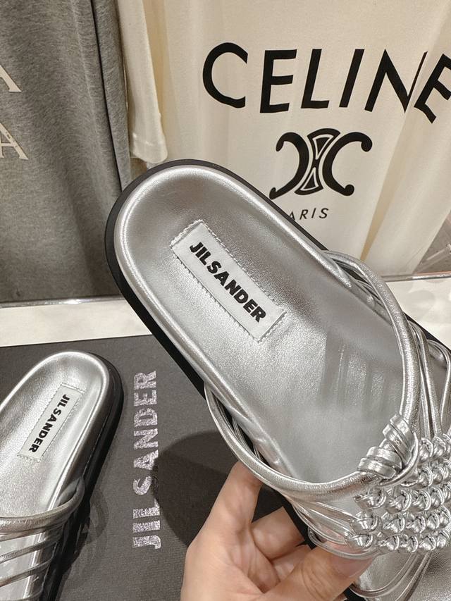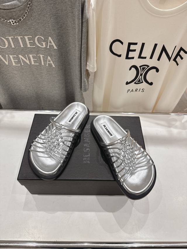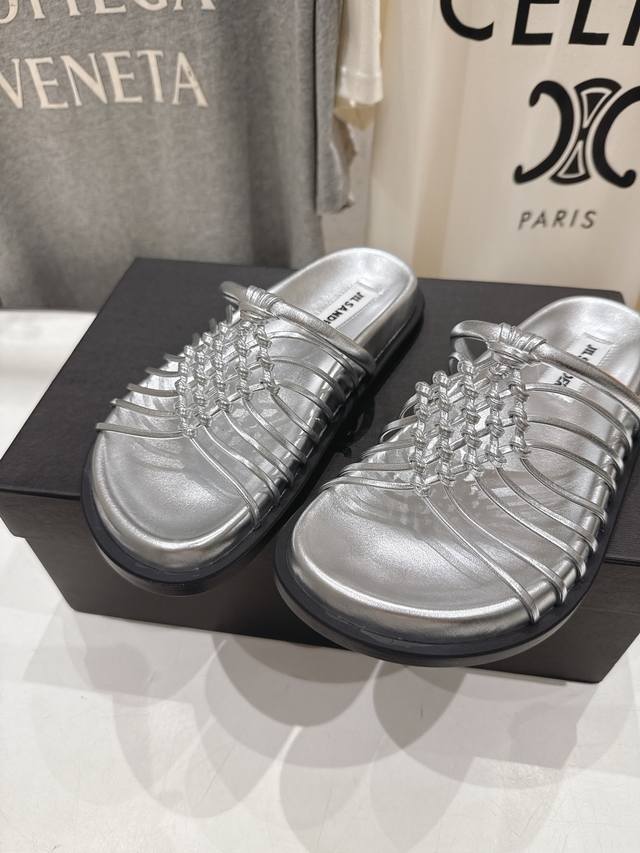 Jil Sander 25Ss latest woven leather mesh beach flat slippers