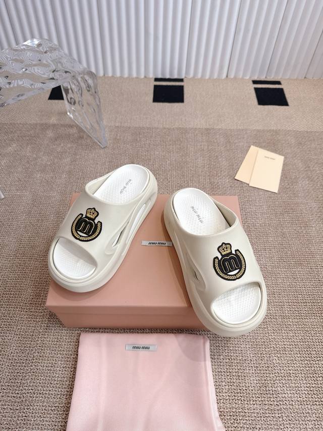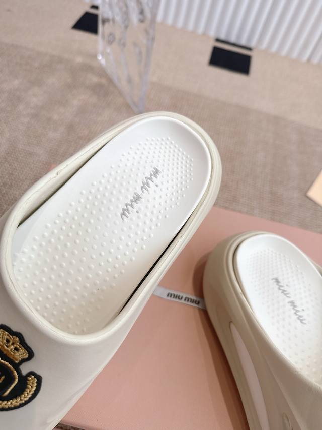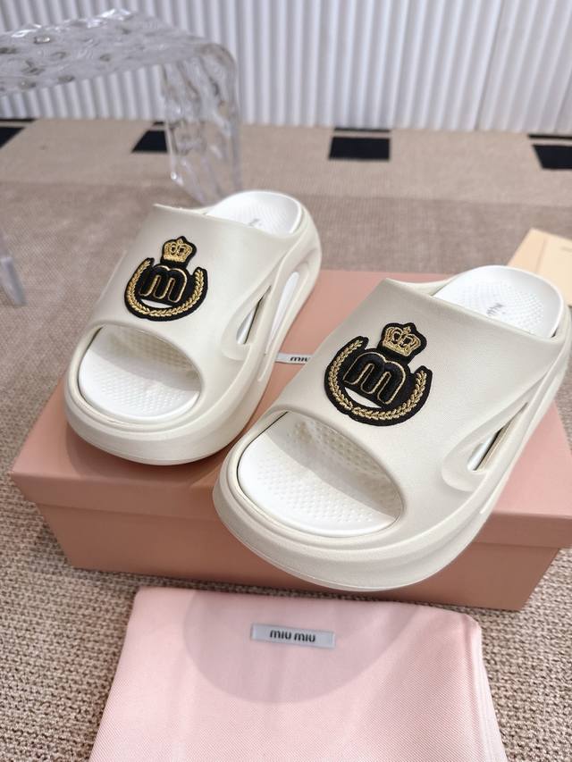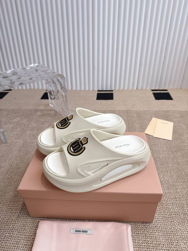 Miumiu Miu Miu thick-soled slippers summer 2025 new style popular wearable sports beach non-slip stepping shit wear-resistant sandals