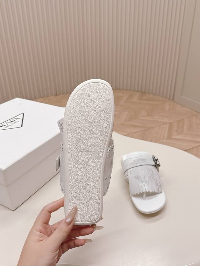 This shoe is designed to present classic and retro style, combining masculine temperament with feminine style, forming a binary contrast, highlighting the iconic style of the Prada series. The tassels are made of special craftsmanship, and details such as buckles and brogues show traditional charm. Breaking the routine and surprising reinterpretation, this shoe is renewed with a more fashionable design.