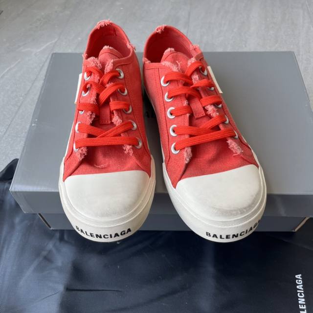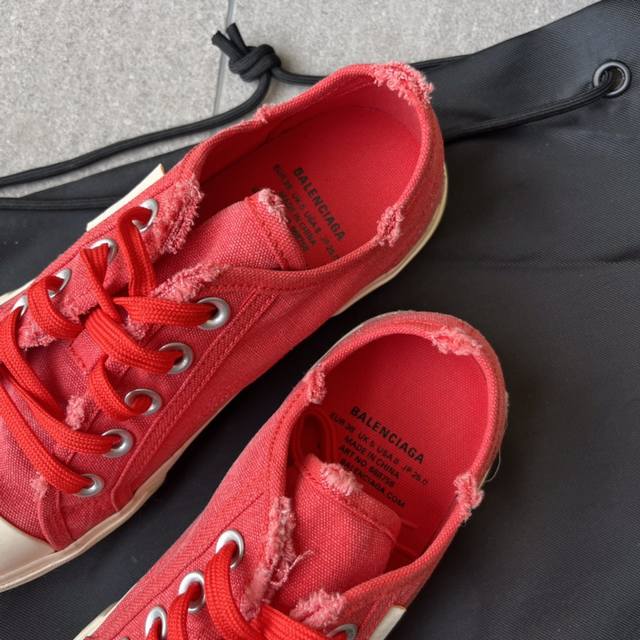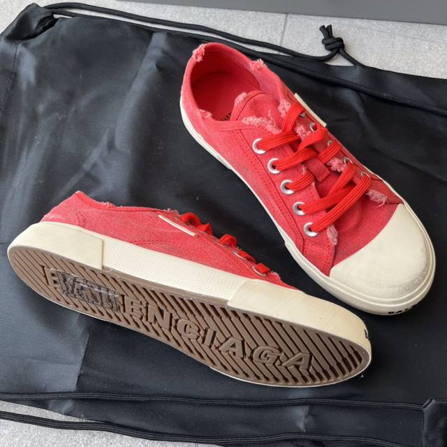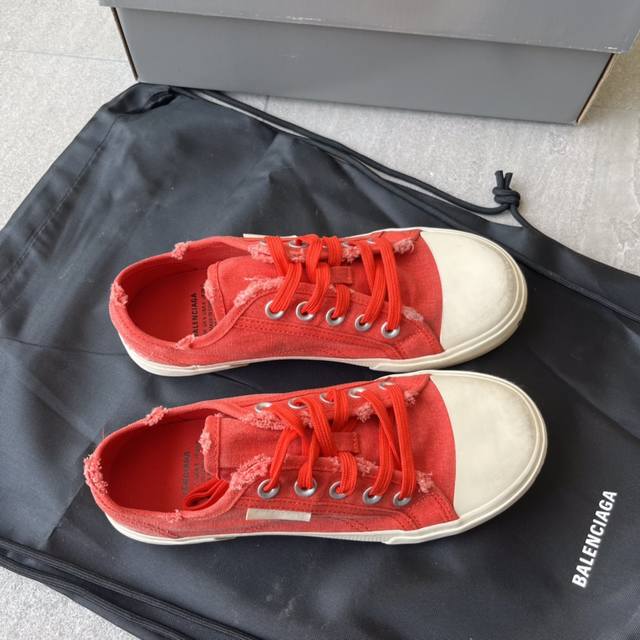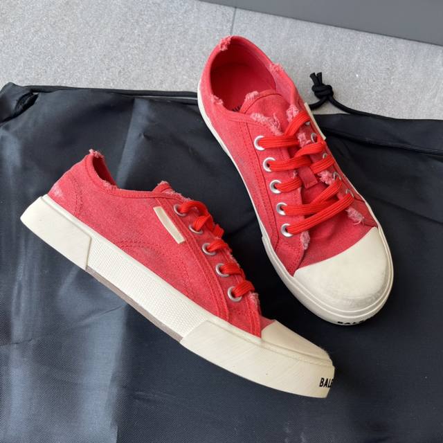 Top Balenciaga Paris 22 summer new product Paris worn and distressed effect casual red canvas shoes