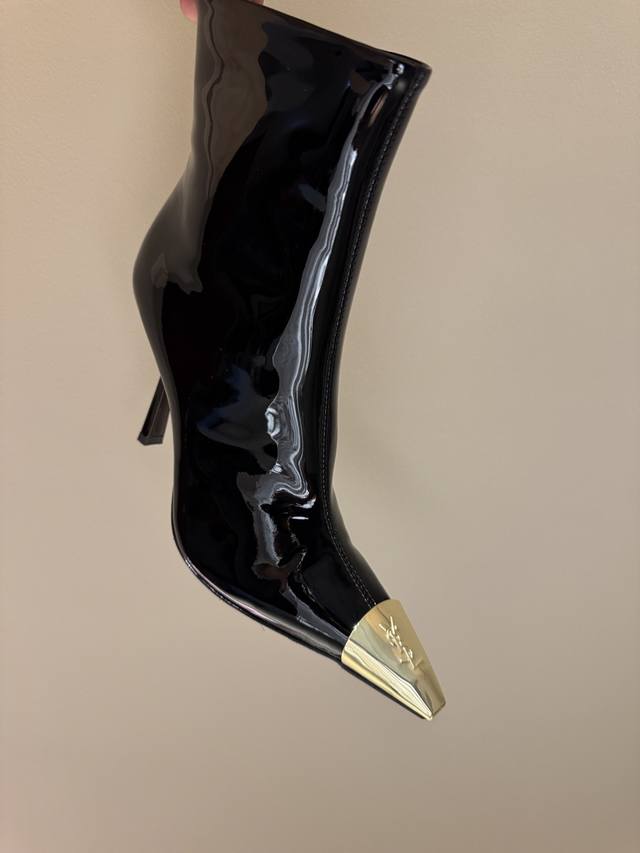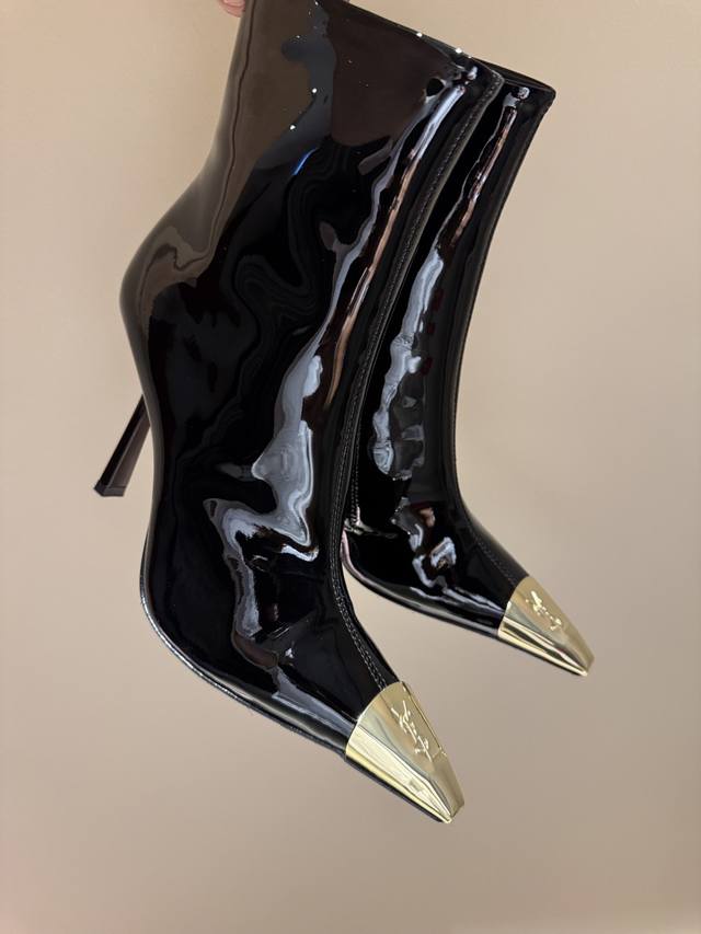 2025 New Saint Laurent YSL Metal Toe Ankle Boots DDD Sexy and Exquisite, Collector's Edition DDD Exquisite curves, a proud rhythm when walking DDD It not only represents nobility and elegance DDD But also symbolizes a unique fashion attitude DDD Rear elastic design. Makes the ankle look more slender DDD The upper is paired with the classic Cassander retro logo DDD Elegant and exquisite DDD Ingenious flowing lines DDD The streamlined design on the side of the shoe DDD Makes the ankle and calf look longer and more charming DDD Let people feel the sexiness and charm of women DDD Upper: Custom imported calfskin suede DDD Lining: Imported sheepskin DDD Sole: Imported genuine leather outsole DDD Heel height: 10.5Cm DDD Color: Black patent leather, black silk DDD Sizes: 34-39 40. Order DDD Full packaging DDD