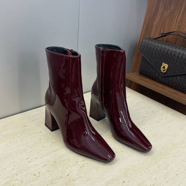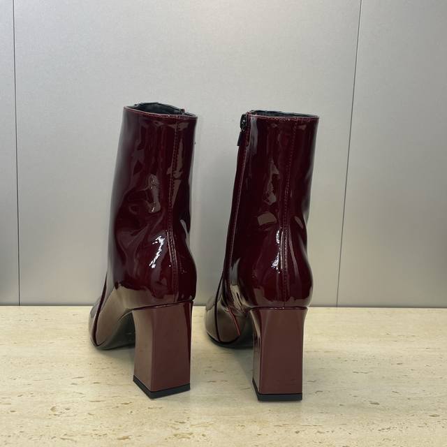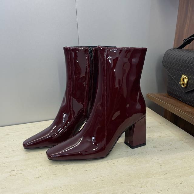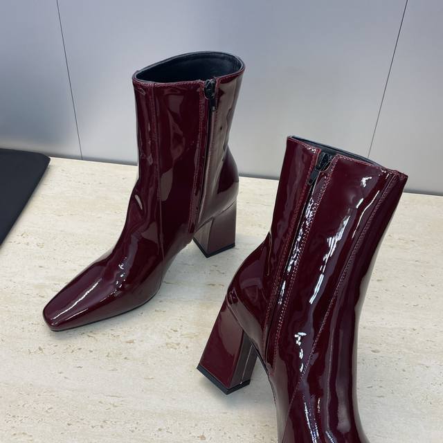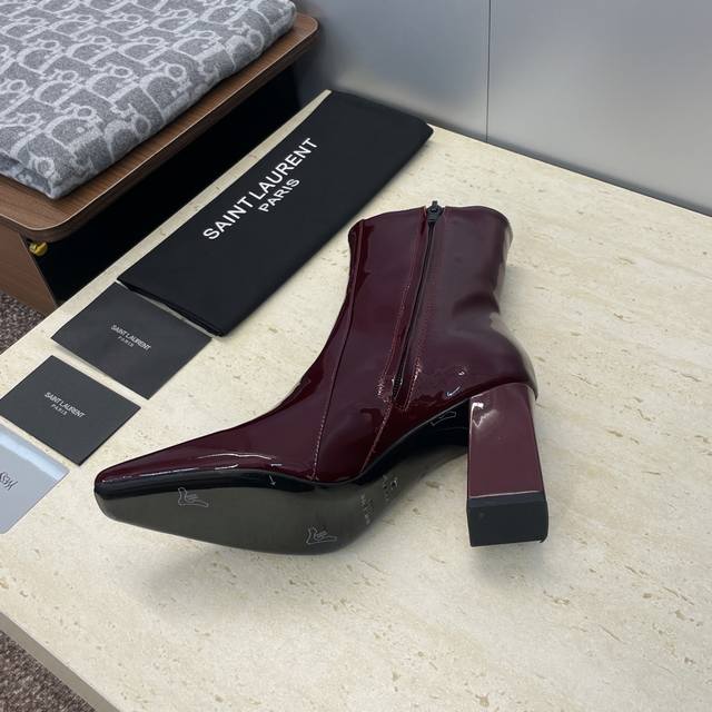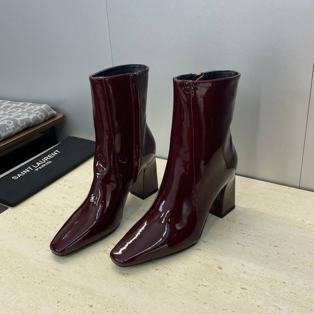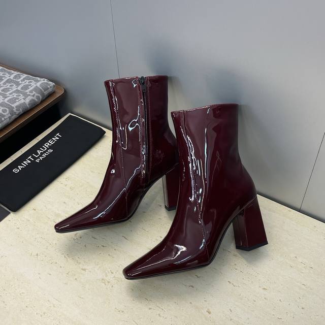 Factory direct price DDD Saint Laurent 2025 Fall/Winter New Chunky Heel Side Zipper Ankle Boots YSL Logo Square Toe High Heel Motorcycle Rider Ankle Boots DDD Material: Imported cow patent leather upper + mixed sheepskin lining + Italian genuine leather outsole DDD Heel height: 7.5Cm DDD Size: 35-41 40.41 Custom orders are non-refundable DDD