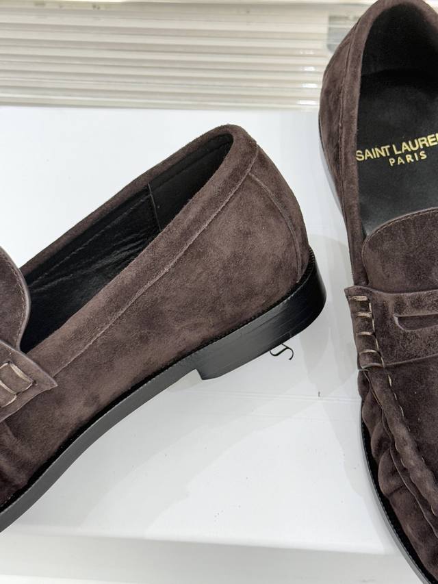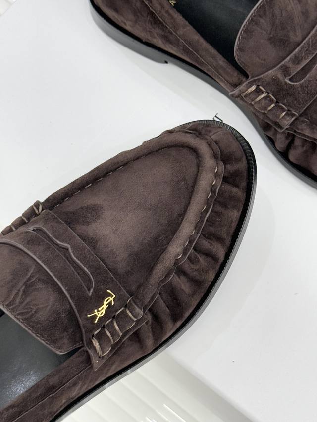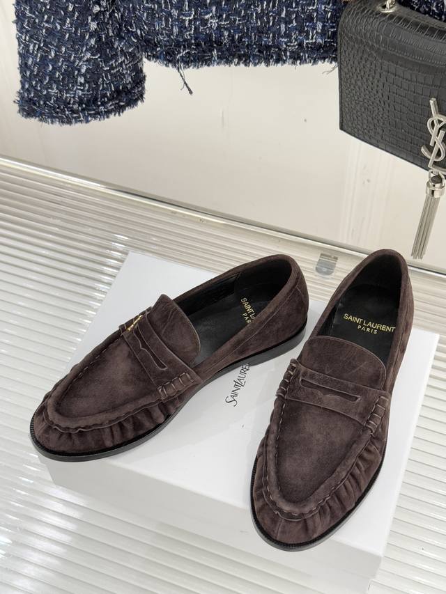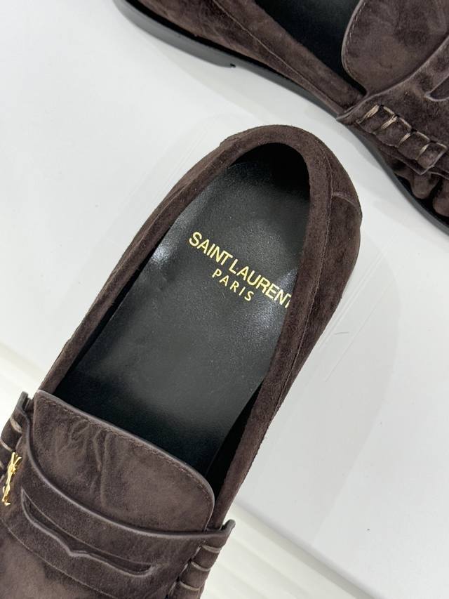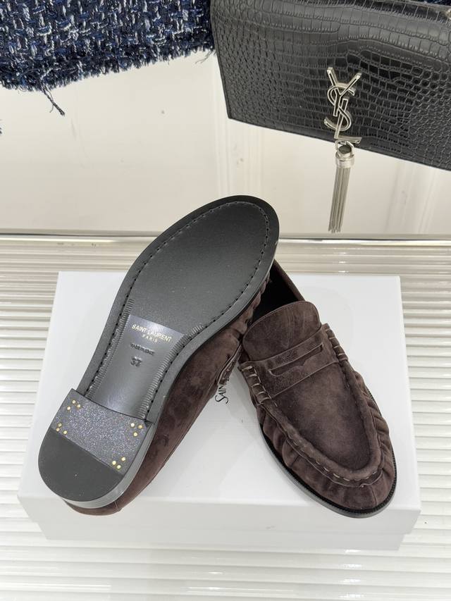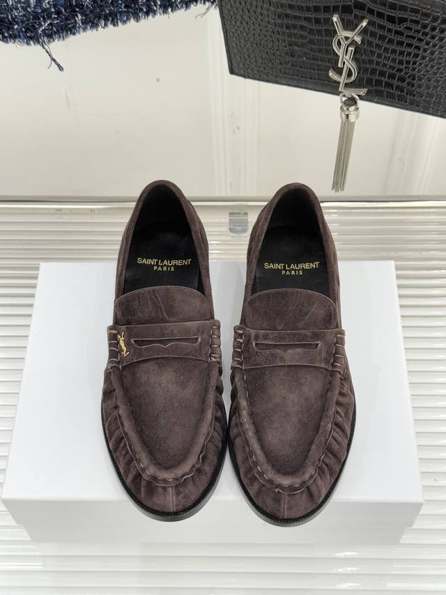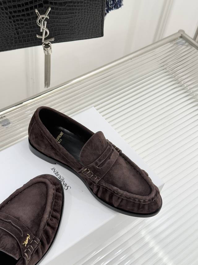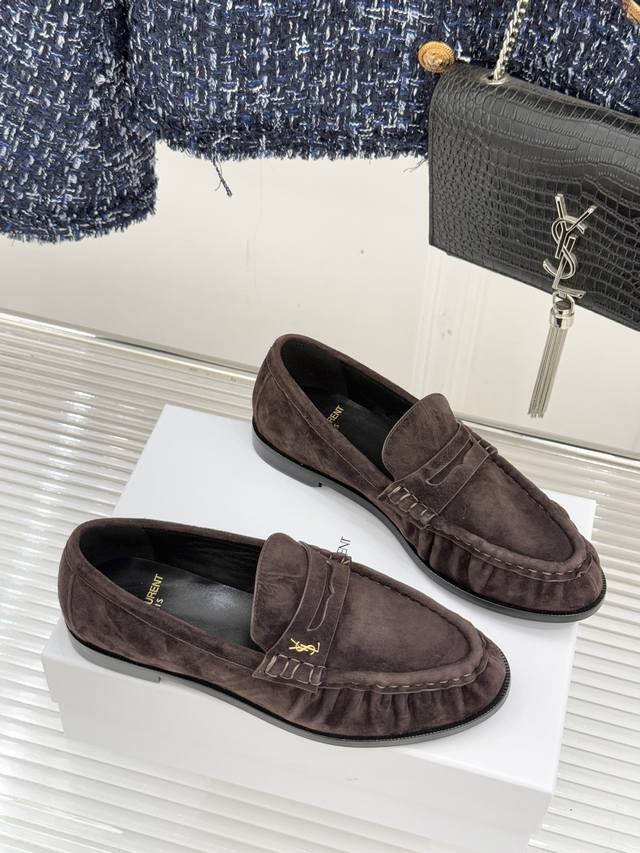 Factory direct price with original airplane box. Saint Laurent (YSL) 25Wf new arrival. YSL small logo loafers. The iconic small logo is the soul of this shoe, presented on the shoe body with a low-key yet exquisite attitude. Unlike the ostentatious large logo, it is quiet yet eye-catching. Simple lines outline YSL's unique fashion. It subtly reveals the brand's profound heritage. The classic almond-shaped design of the toe cleverly modifies the foot shape, visually lengthening the foot line and highlighting elegance and delicacy. Whether paired with simple wide-leg pants or a playful short skirt, it can easily handle different styles and charm, becoming the finishing touch in the look. The upper uses original custom leather. The insole is made of sheepskin. The outsole is made of imported Italian genuine leather. Size: 35-39 40 41 42 (custom sizes available).