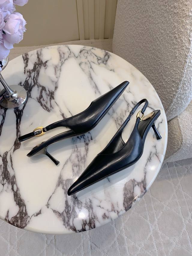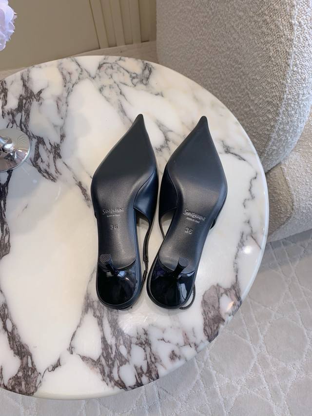 Saint Lauren* Ysl Yang Shulin new kitten heel pointed toe slingback shoes. Beautiful lady's high heels are elegant, charming, sexy and full of femininity.
