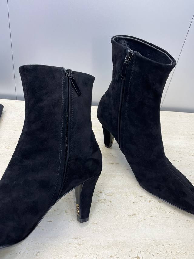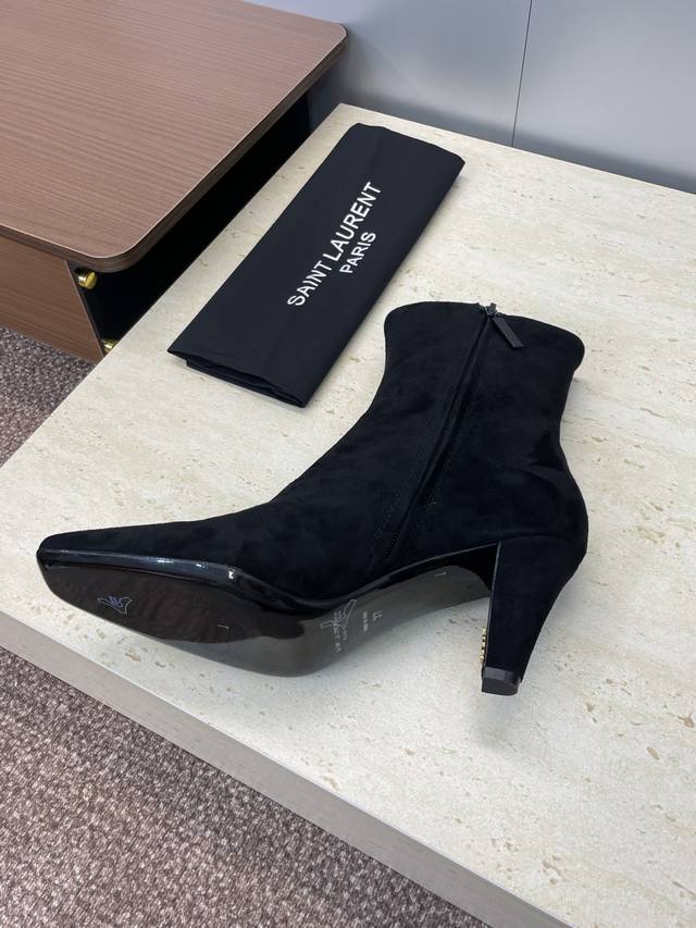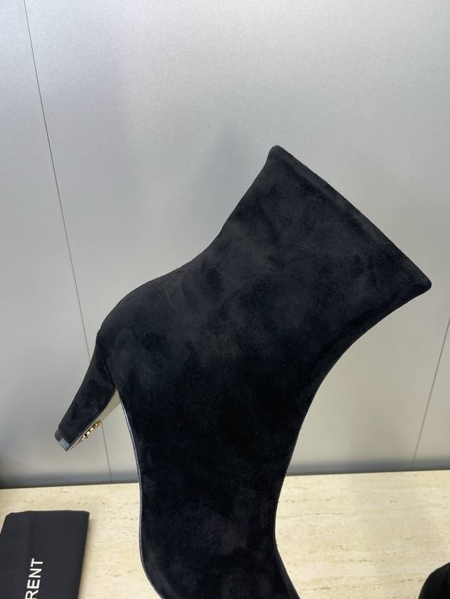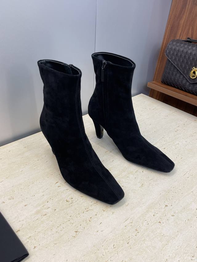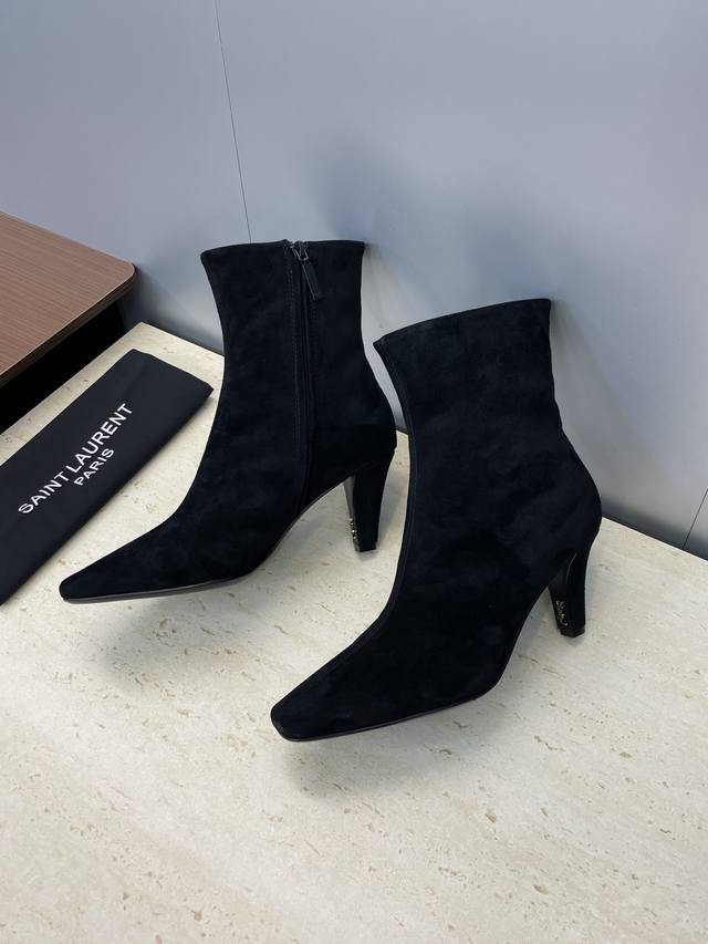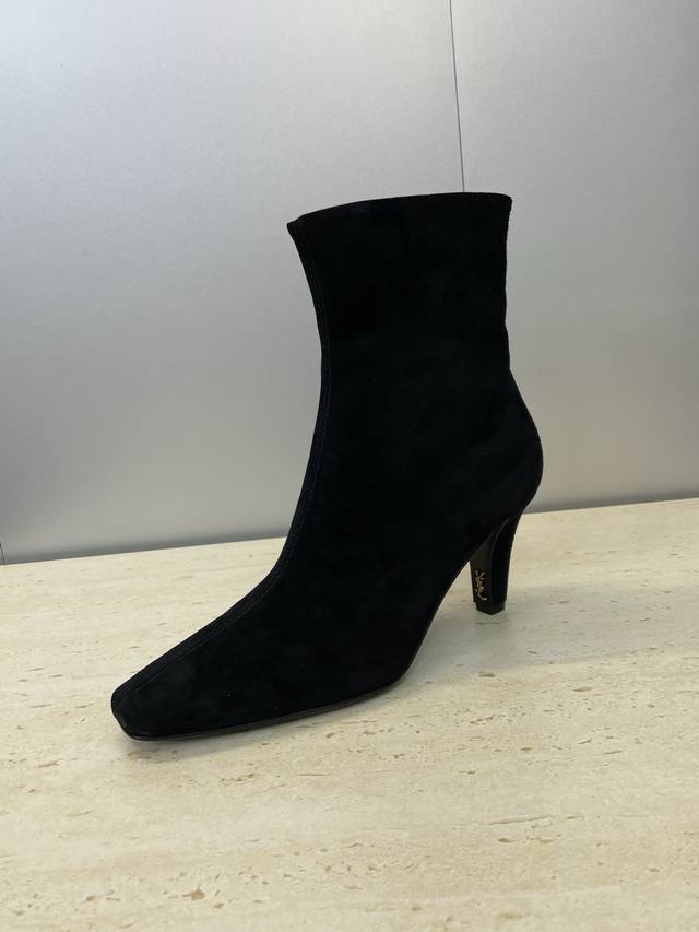 Saint Laurent 2025 Fall/Winter New Martin Women's Boots YSL Logo Side Zipper Square Toe High Heel Motorcycle Rider Ankle Boots