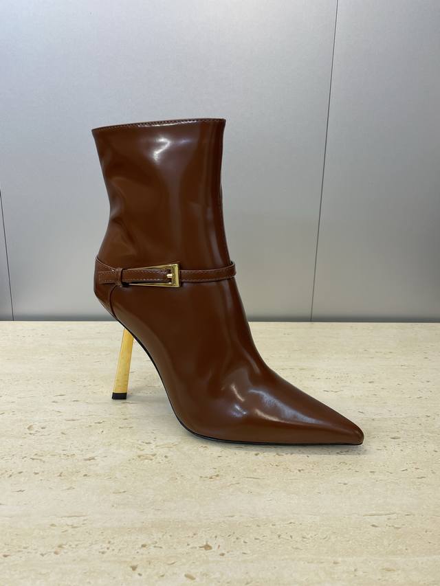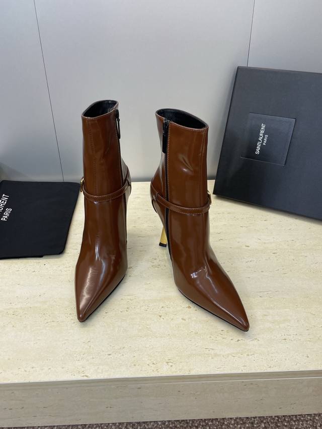 Saint Laurent 2025 Fall/Winter New Metal Stiletto Martin Boots YSL Logo Hardware Buckle Side Zipper Pointed Toe High Heel Motorcycle Rider Ankle Boots