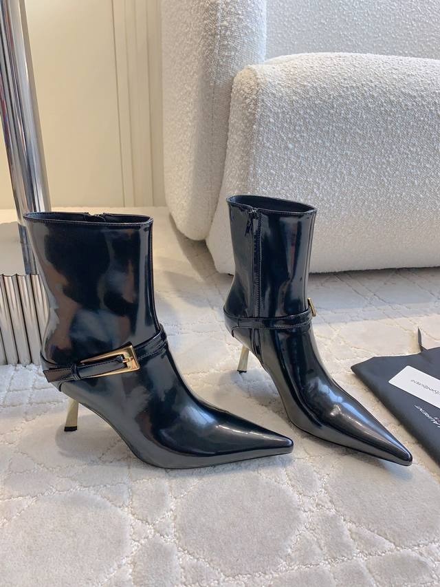 Factory Price p DDD YSL New High-Heeled Ankle Boots, Original Purchase, Autumn/Winter Versatile Slimming Essential, Inner Zipper Design for Easy On and Off DDD Original Cowhide Upper, Sheepskin Lining, Italian Genuine Leather Outsole, 7.5cm Heel Height, Sizes 35-39, 40 Custom Made DDD