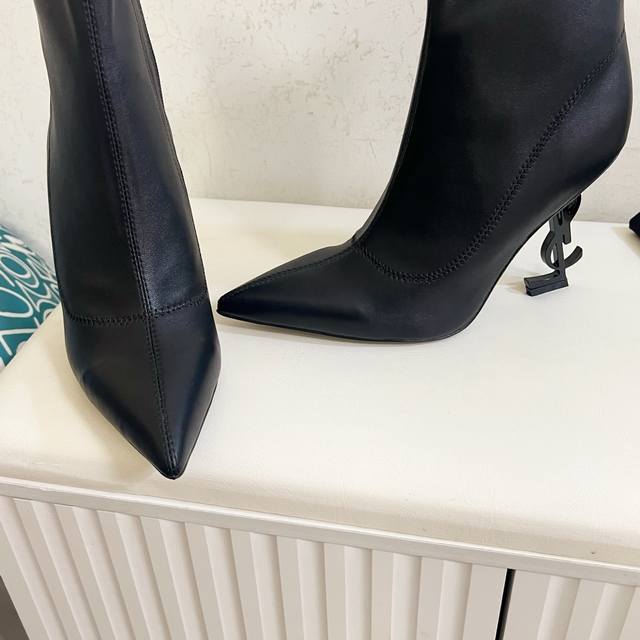 Factory Price (pp): , Saint Laurent YSL Women's Stretch Ankle Boots. Italian Genuine Leather Outsole. Sizes: 35-42. Material and Fit: Made of light brown stretch suede, it closely conforms to the leg lines, providing an excellent slimming effect. The over-the-knee boot style elongates the leg proportions, creating an elegant and sophisticated look. The heel features a gold YSL brand logo.