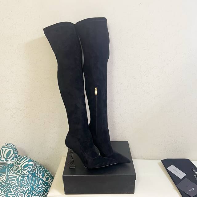 Factory Price (pp): Ddd Saint Laurent YSL Women's Stretch Over-the-Knee Boots. Ddd Italian Genuine Leather Sole. Ddd Sizes: 35-42. Ddd Material and Fit: Made of light brown stretch suede, it closely conforms to the leg lines, providing an excellent slimming effect. The over-the-knee boot shape elongates the leg proportions, creating an elegant and sophisticated look. DDD