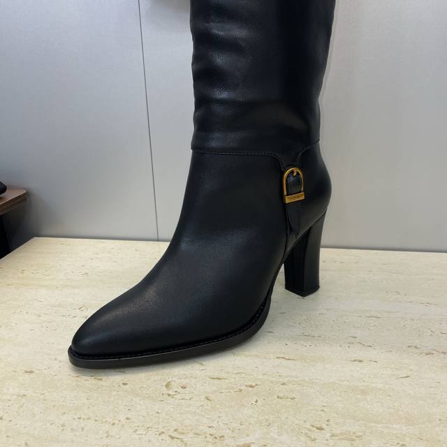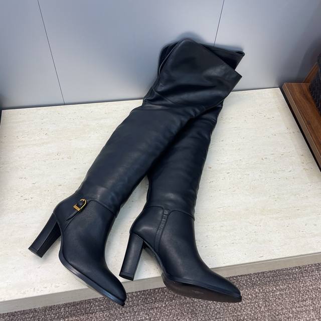 Factory Price DDD Saint Laurent 2025 Fall/Winter New Chunky Heel Pointed Toe Over-the-Knee Rider Boots for Women, YSL Logo Hardware Buckle High-Heeled Slip-On Motorcycle Martin Boots DDD Materials: Imported calfskin upper + water-dyed sheepskin lining + Italian genuine leather outsole DDD Heel height: 9cm DDD Shaft height: 24 inches DDD Sizes: 35-41 Sizes 40 and 41 are custom-made, no returns or exchanges DDD