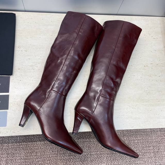 Factory Price DDD Saint Laurent 2025 Fall/Winter New Square Toe Knee-High Rider Boots for Women, YSL Logo Hardware Buckle High Heel Slip-On Motorcycle Martin Boots DDD Materials: Imported oil-waxed calfskin upper + water-dyed sheepskin lining + Italian genuine leather outsole DDD Heel height: 7cm DDD Shaft height: 18 inches DDD Sizes: 35-41 Sizes 40 and 41 are custom-made, no returns or exchanges DDD