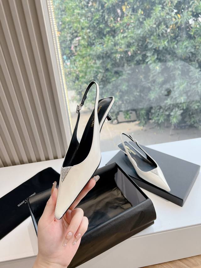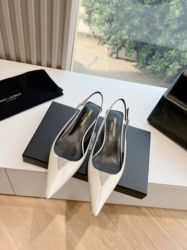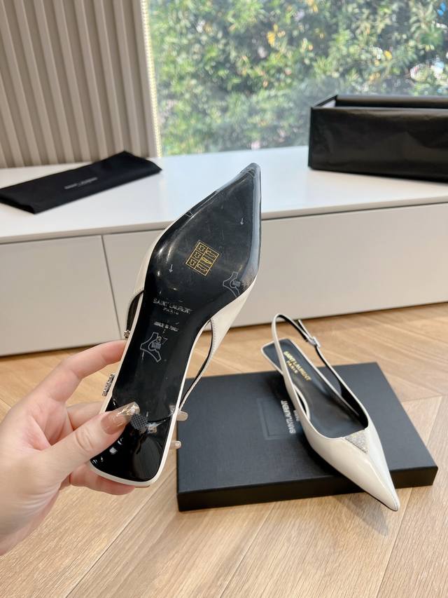 G085 Top quality Saint Laurent Lee metal diamond buckle YSL's beautiful high heels, also the same style as Saint Laurent Rose's kitten heels, high heels that perfectly flatter the foot shape, luxurious metal chain. In recent years, Slp has become more and more understanding of women in high heels, moving away from the awkward design of platform shoes. YSL's stunning high heels. Upper: Split beaded cowhide. Sole: Genuine leather outsole. Heel height: 3cm.