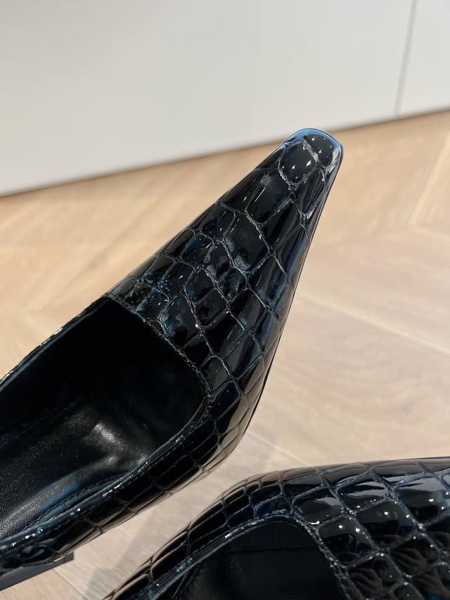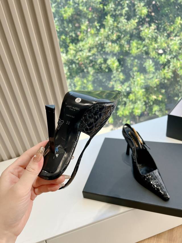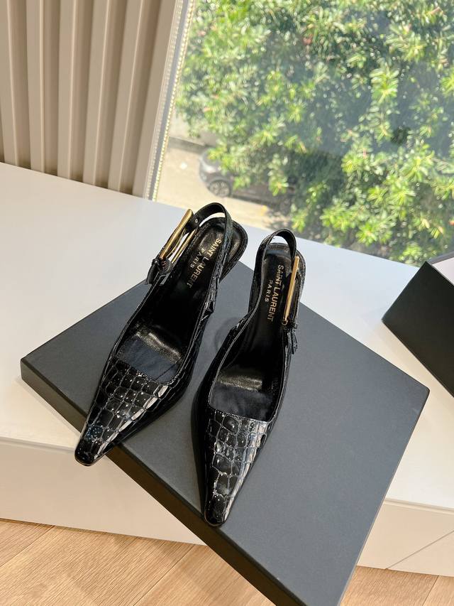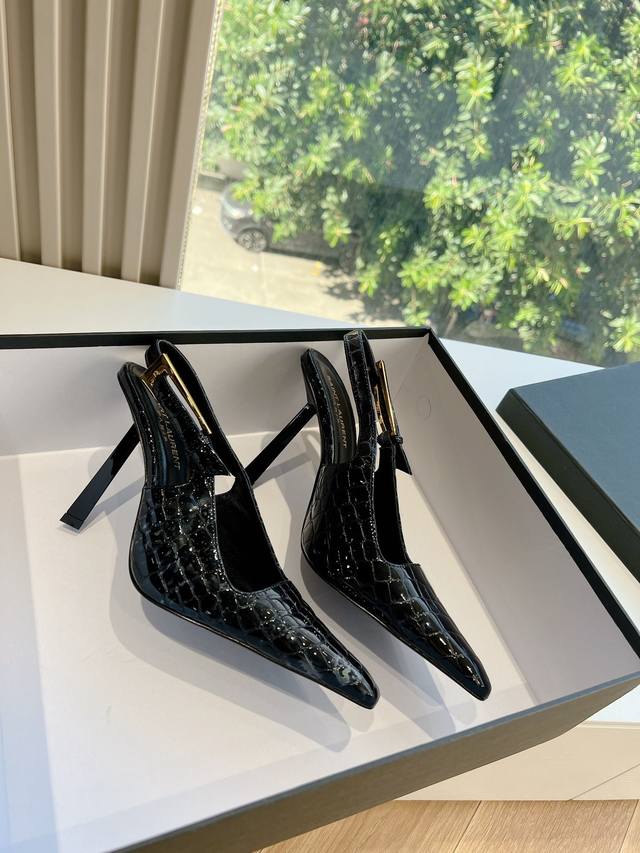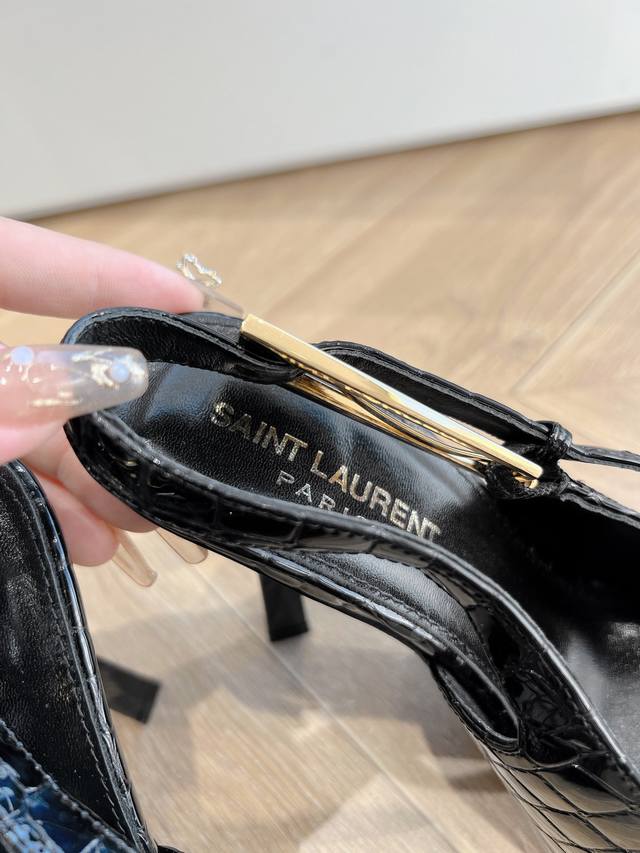 YSL's beautiful high heels, also the same style as Saint Laurent Rose, the small square toe high heels that perfectly flatter the foot shape. The luxurious metal chain shows that Saint Laurent has become more and more understanding of women in high heels in recent years