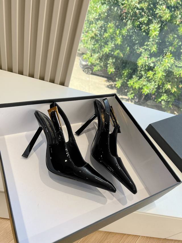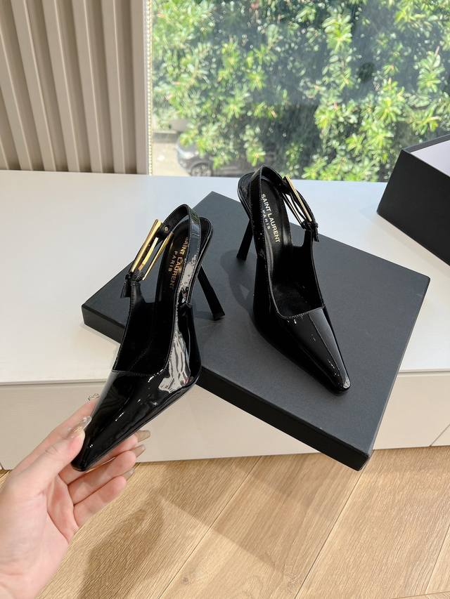 YSL's beautiful high heels, also the same style as Saint Laurent Rose, the small square toe high heels that perfectly flatter the foot shape. The luxurious metal chain shows that Saint Laurent has become more and more understanding of women in high heels in recent years