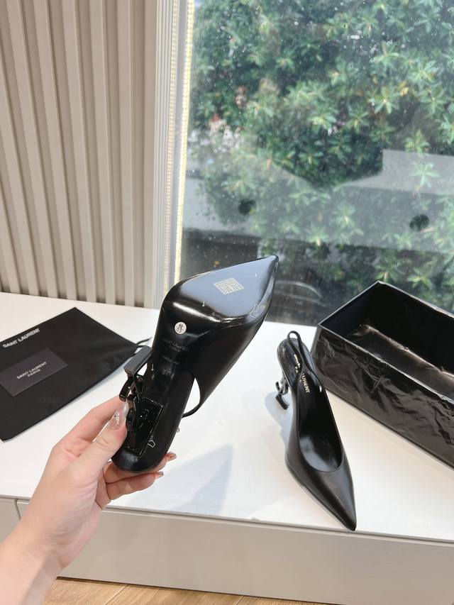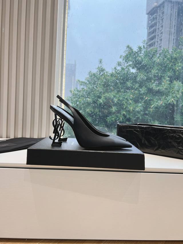 YSL's beautiful high heels, also the same style as Saint Laurent Rose, the small square toe high heels that perfectly flatter the foot shape. The luxurious metal chain shows that Saint Laurent has become more and more understanding of women in high heels in recent years