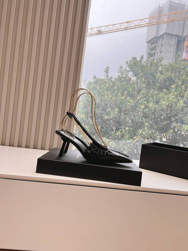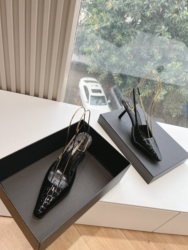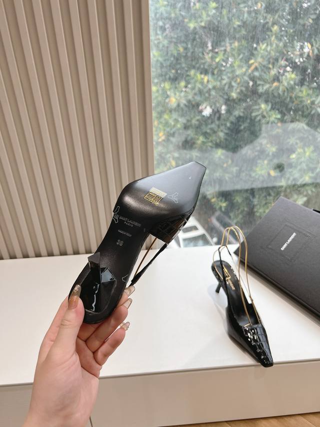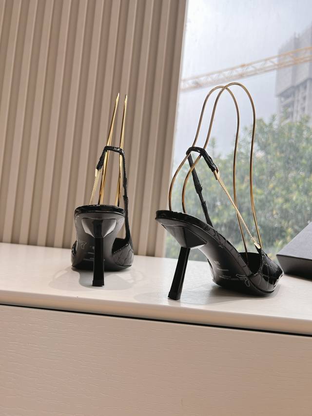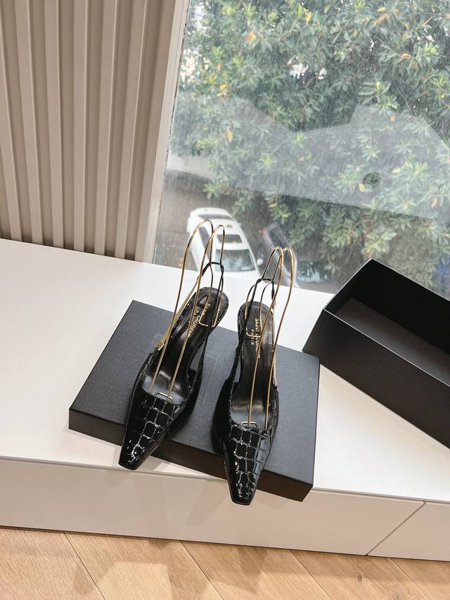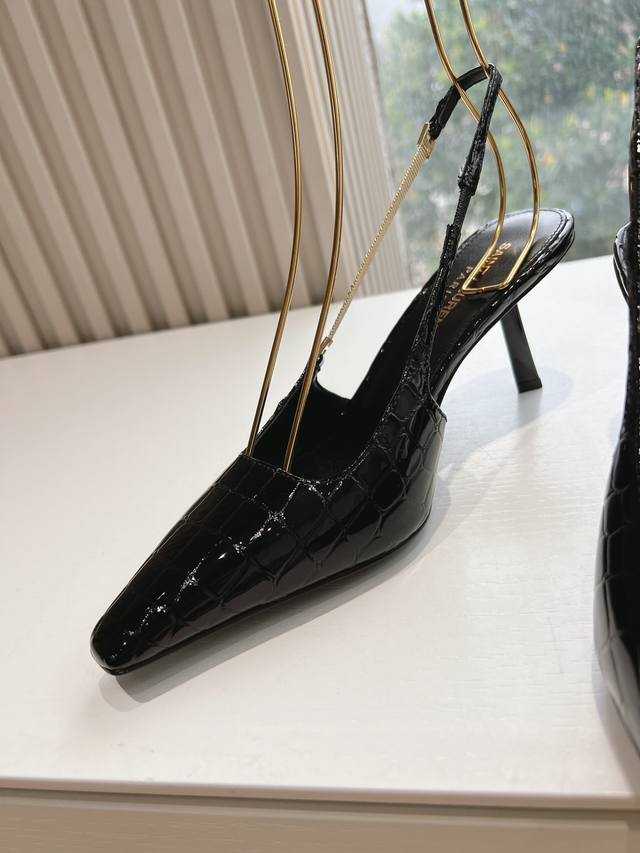 YSL's beautiful high heels, also the same style as Saint Laurent Rose, the small square toe high heels that perfectly flatter the foot shape. The luxurious metal chain shows that Saint Laurent has become more and more understanding of women in high heels in recent years