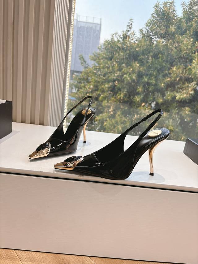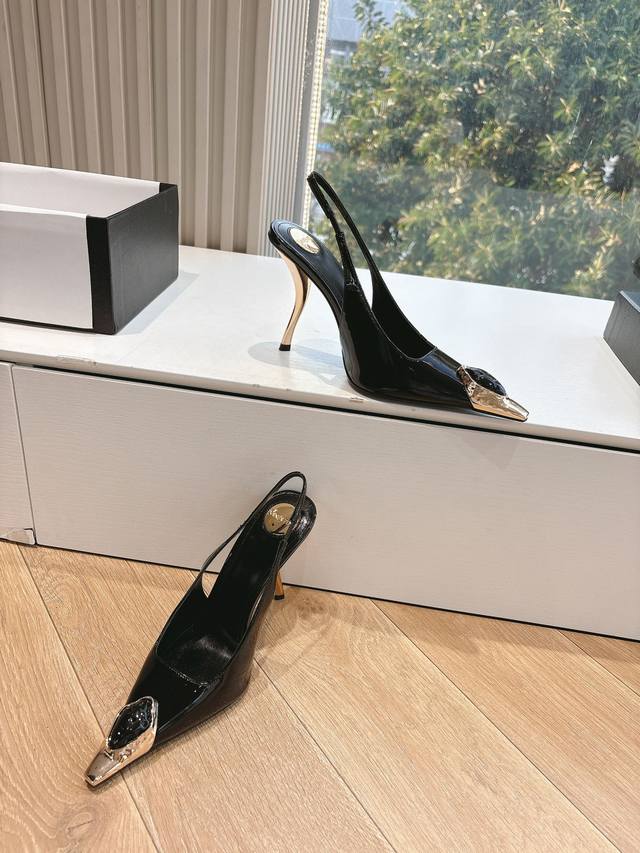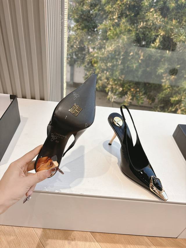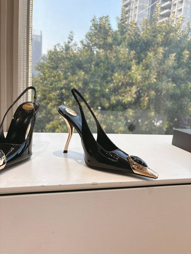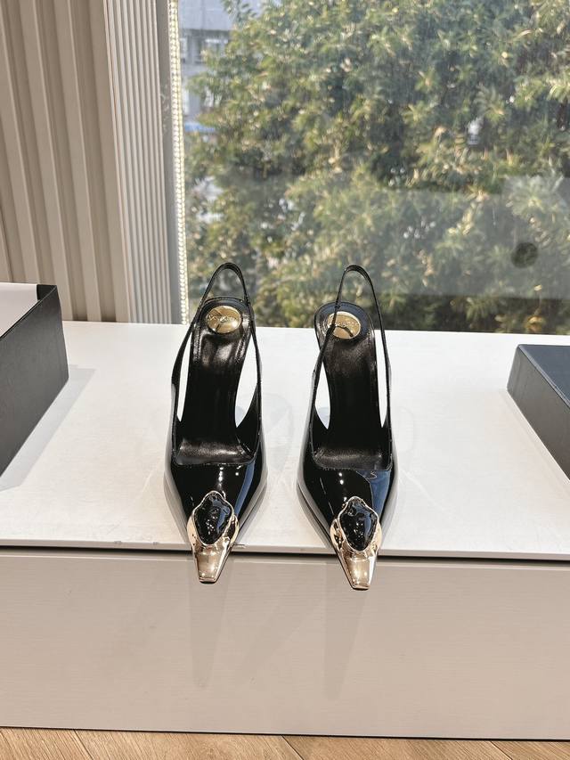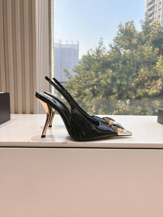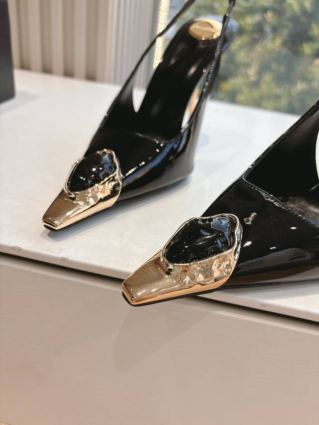 YSL's beautiful and alluring high heels, the same style as Saint Laurent Rose, small square toe high heels that perfectly flatter the foot shape, luxurious metal chain. In recent years, Slp has become more and more understanding of women in high heels