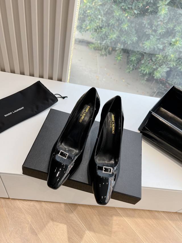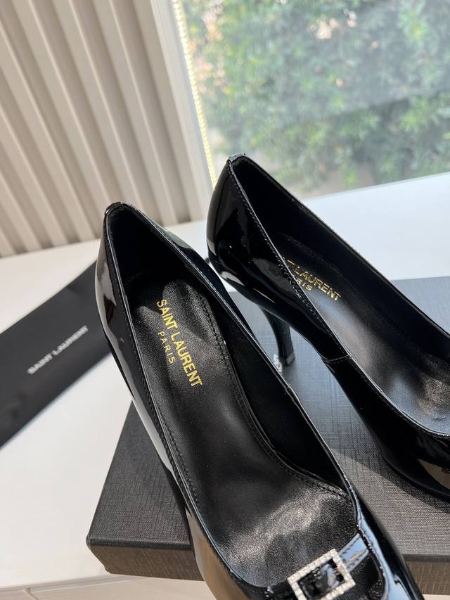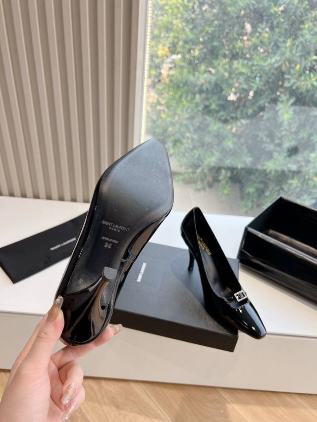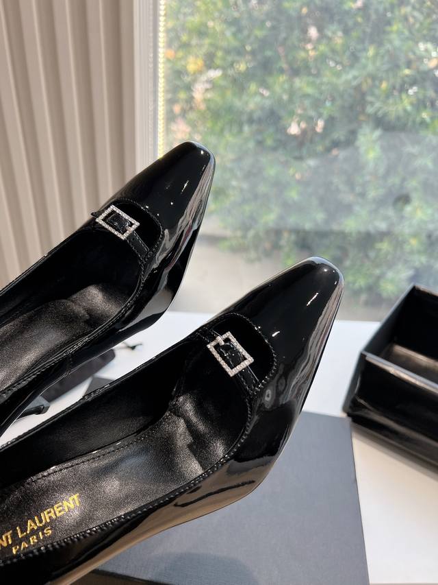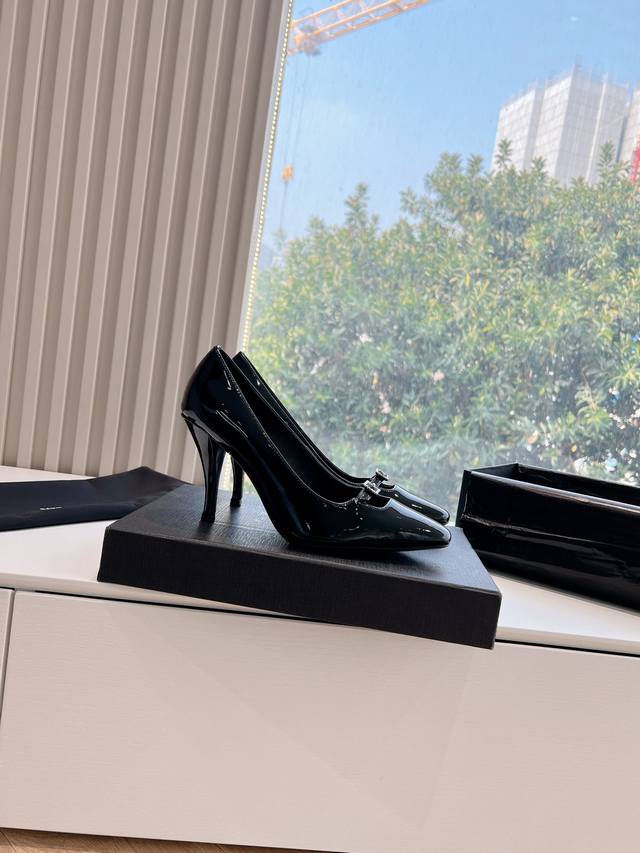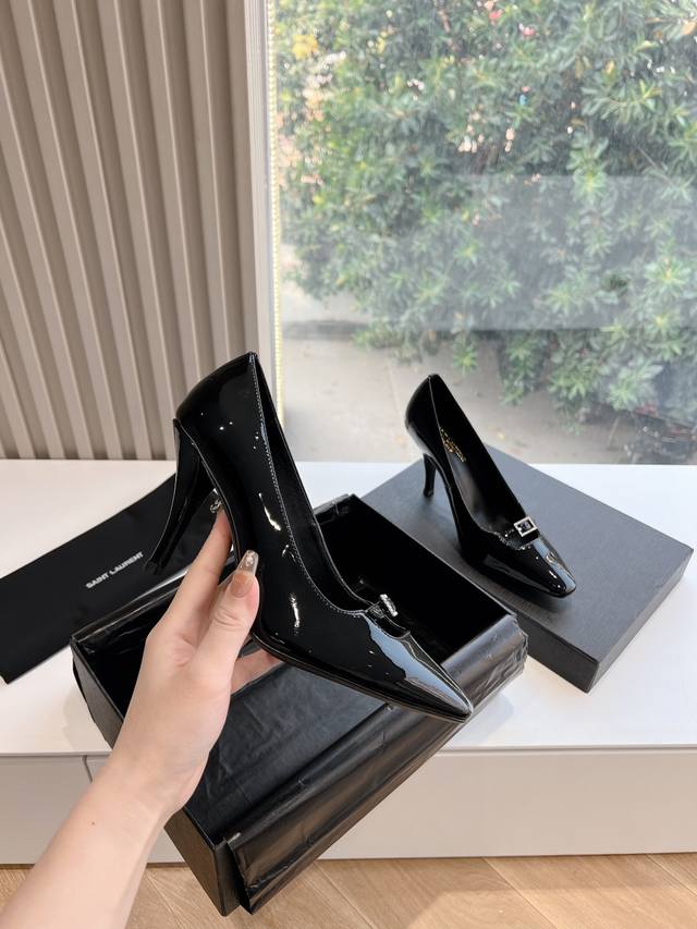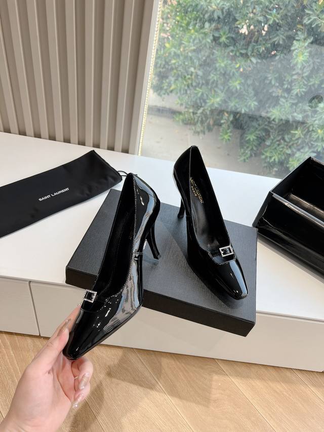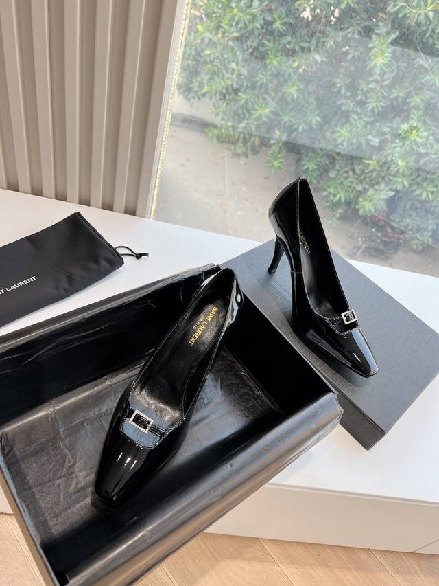 YSL's beautiful high heels, also the same style as Saint Laurent Rose, the small square toe high heels that perfectly flatter the foot shape. The luxurious metal chain shows that Saint Laurent has become more and more understanding of women in high heels in recent years