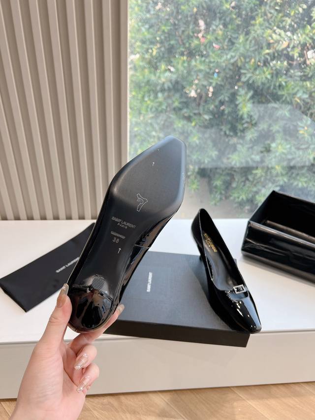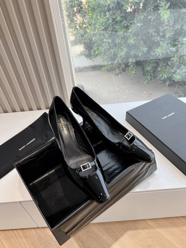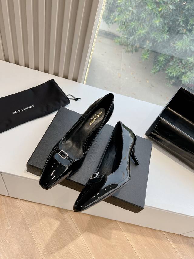 YSL's beautiful high heels, also the same style as Saint Laurent Rose, the small square toe high heels that perfectly flatter the foot shape. The luxurious metal chain shows that Saint Laurent has become more and more understanding of women in high heels in recent years