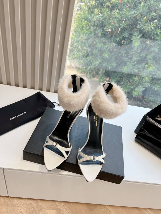 G988 Top Quality Saint Laurent Lee Mink Fur Slip-On High Heels