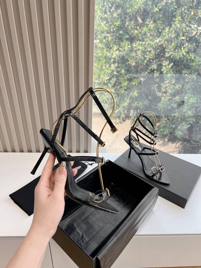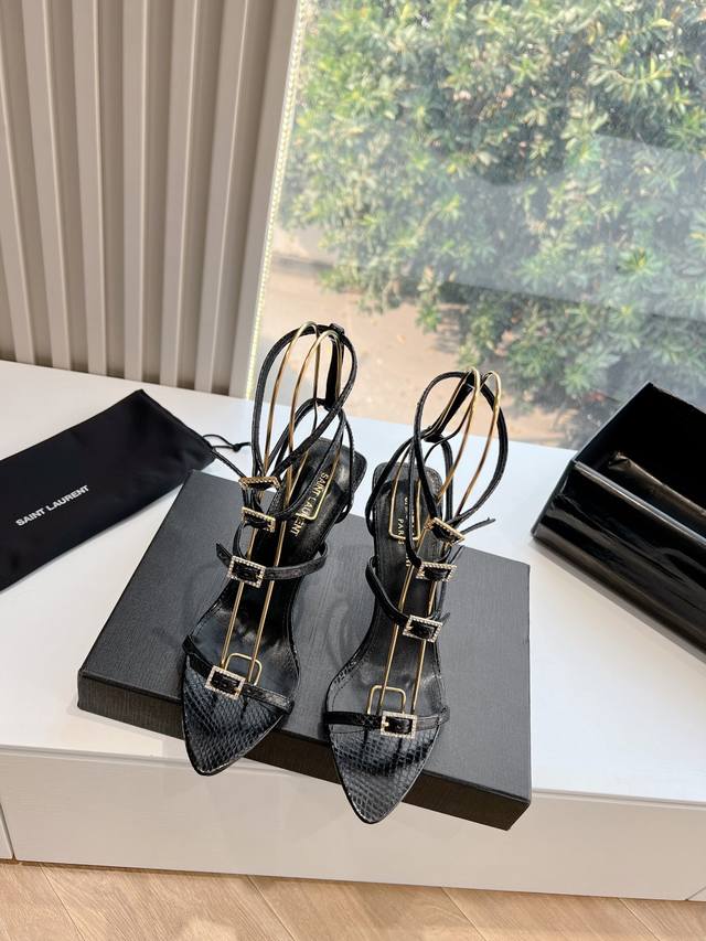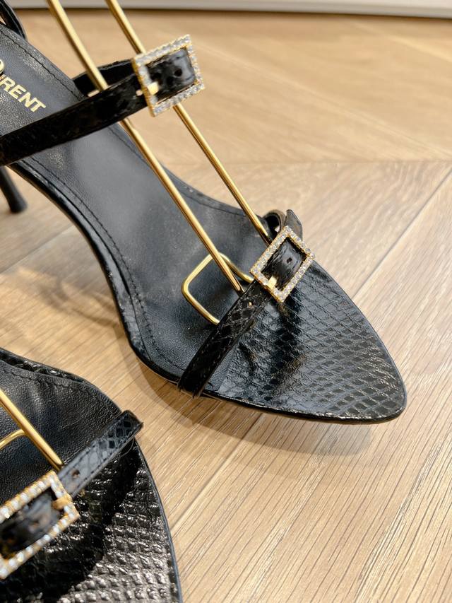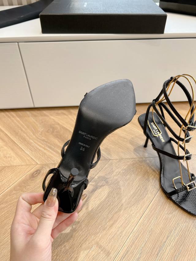 YSL's beautiful high heels are the same style worn by Saint Laurent Rose. The small square toe high heels are very flattering and flatter the foot shape. The luxurious metal chain shows that Saint Laurent has become more and more understanding of women in high heels in recent years.
