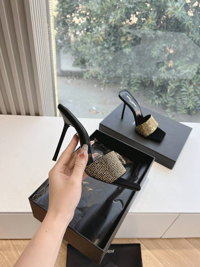 G988 Top Quality Saint Laurent Wedge Peep Toe Sandals with Metal Rhinestone Chain - YSL's Beautiful High Heels, also the same style worn by Saint Laurent Rose. These high heels beautifully flatter the foot shape, featuring a luxurious metal chain. In recent years, Slp has increasingly understood women's high heels, moving away from the awkward design of platform shoes. YSL's stunning high heels. Upper: Original material. Sole: Genuine leather. Heel height: Approx. 11cm. Sizes: 35-42, 40-42 (custom sizes, no returns or exchanges).