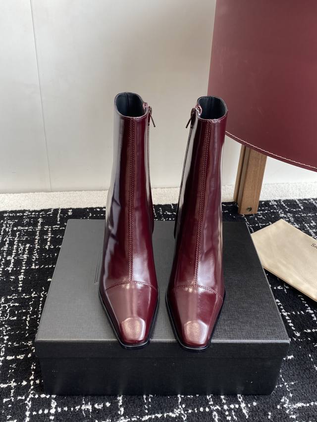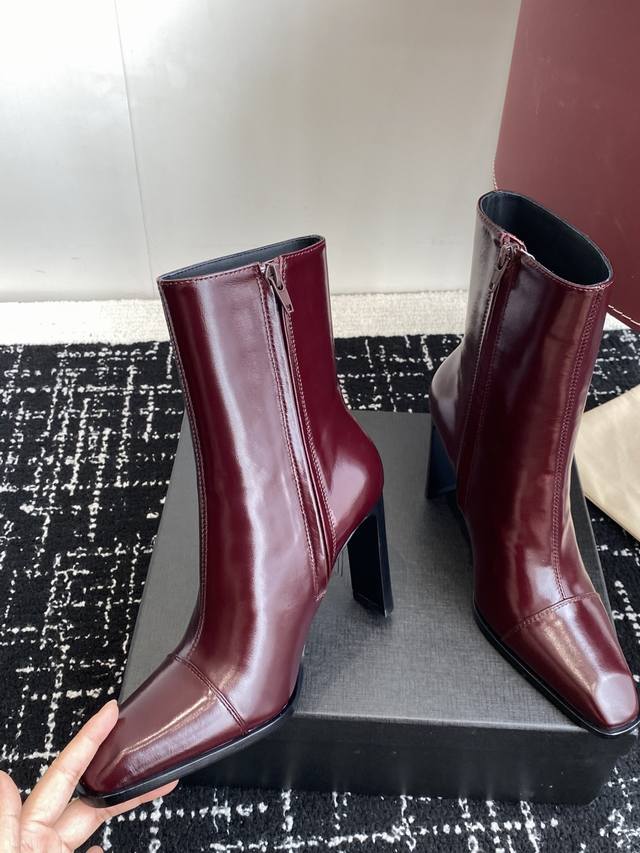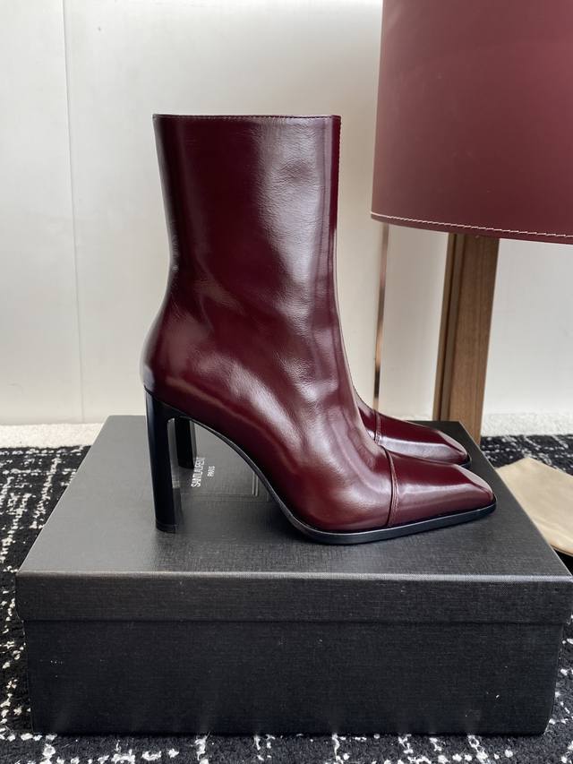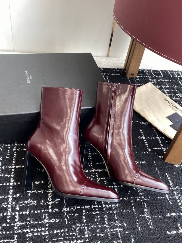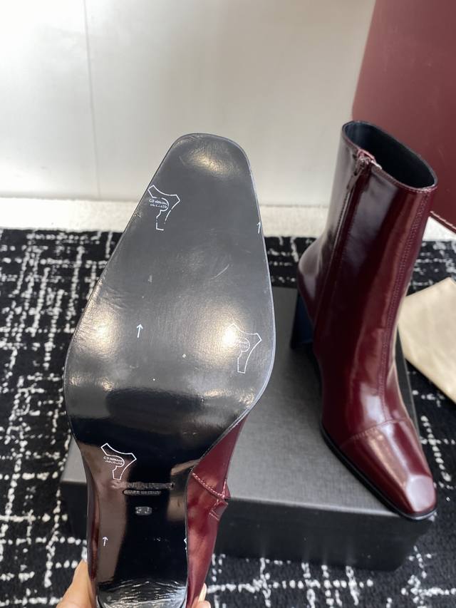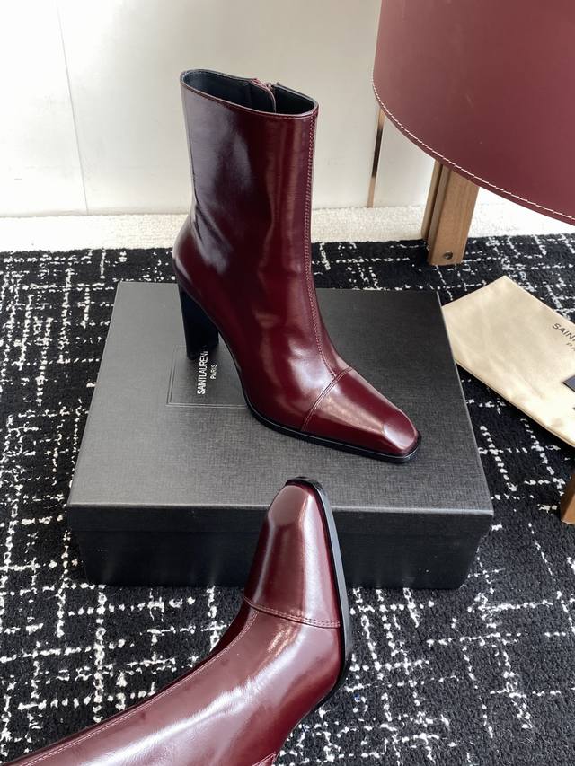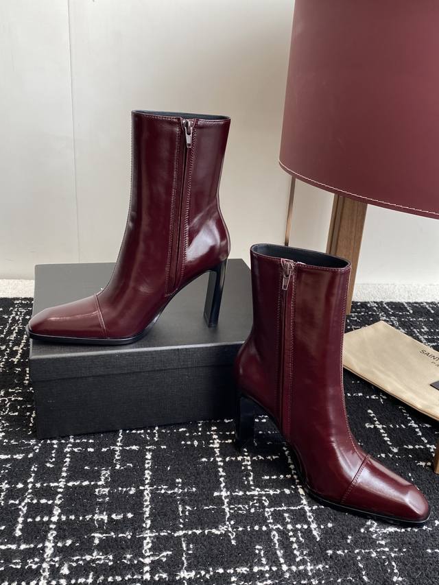 High-quality ankle boots (570cm) DDD Saint Laurent Fw25 New Arrival YSL Saint Laurent DDD 2025 Fall/Winter New Side Zipper High-Heeled Ankle Boots with Chunky Heel DDD Ankle boots featuring a square pointed toe and a tapered chunky heel, adorned with Le Cassandre on the inner side, and a side zipper closure. DDD The entire shoe is very simple and elegant. The small square toe adds a touch of sophistication and style. The side of the boot is designed to conform to the natural curve of the leg, making it very flattering and suitable for all body types. It elongates the legs and is suitable for various occasions. A must-have item for fall and winter! DDD Upper: Cowhide Lining Insole: Sheepskin Outsole: Italian Grade A Genuine Leather Outsole DDD Heel Height: 9.5cm DDD Size: 35-39 40.41 Custom-made, no returns or exchanges DDD